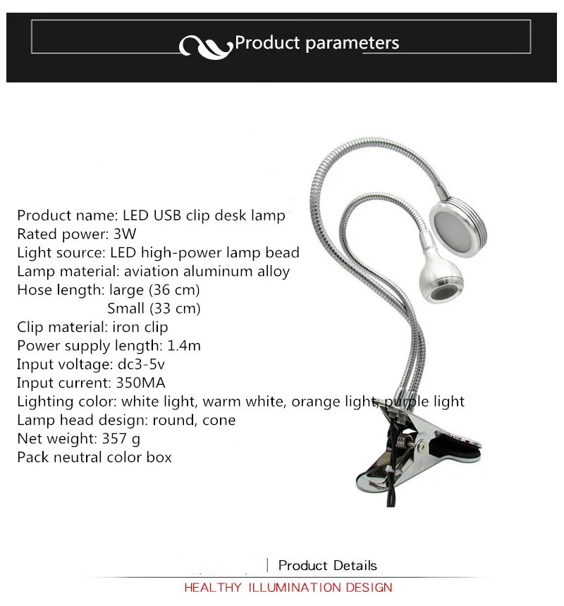 Четыре виды опционально Двойной холодный белый Двойной теплый белый Оранжевая лампа с двойной головкой Фиолетовый светильник с маленькой головкой + белый светильник с большой головкой