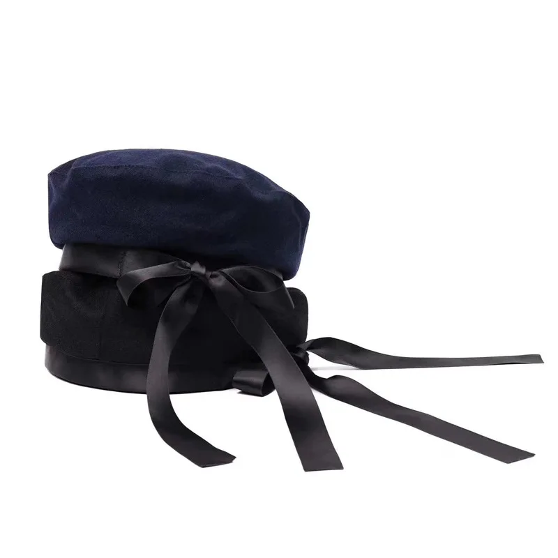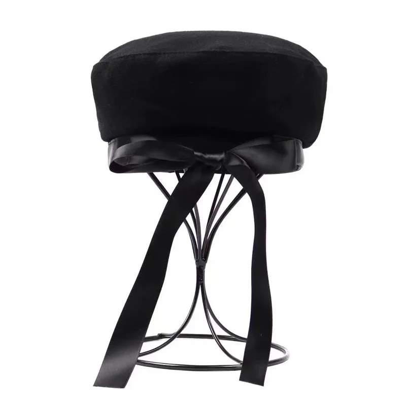 Новая модная шерстяная военная шапка, осенняя теплая шапка моряка для женщин и мужчин, Плоские береты с галстуком-бабочкой, Женская туристическая Кепка Капитана