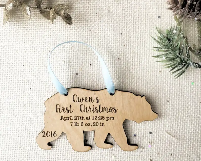 Первый Рождественский орнамент медведя-деревянные, на выбор орнамент-новый детский подарок-детальные детали-Новогодний подарок