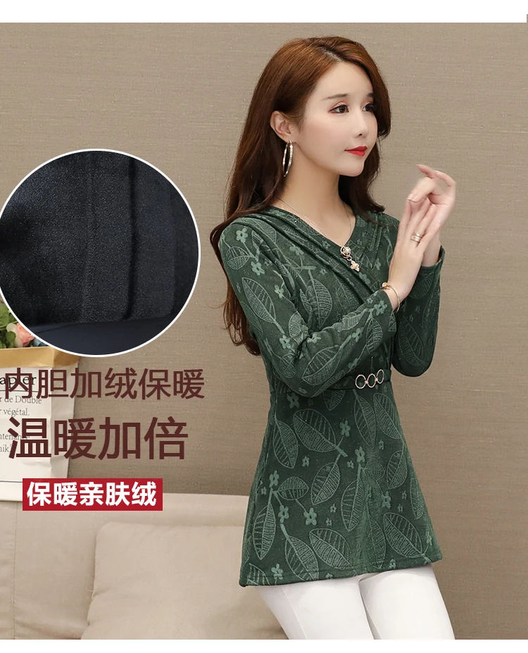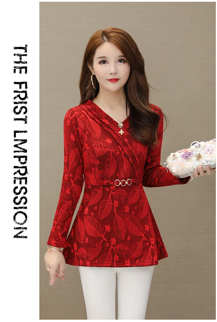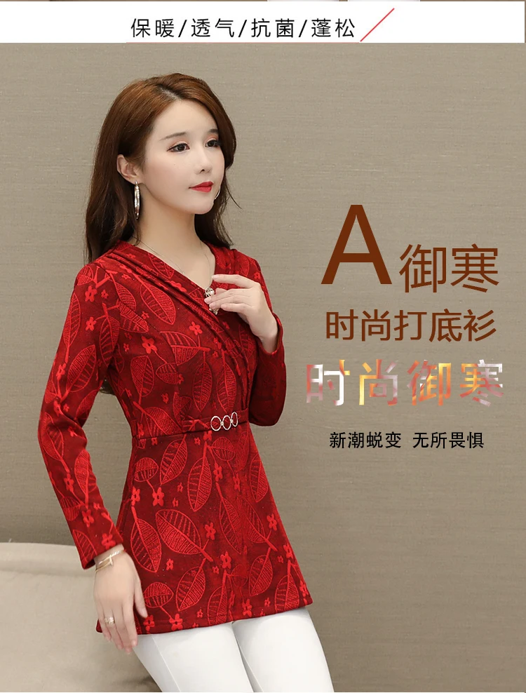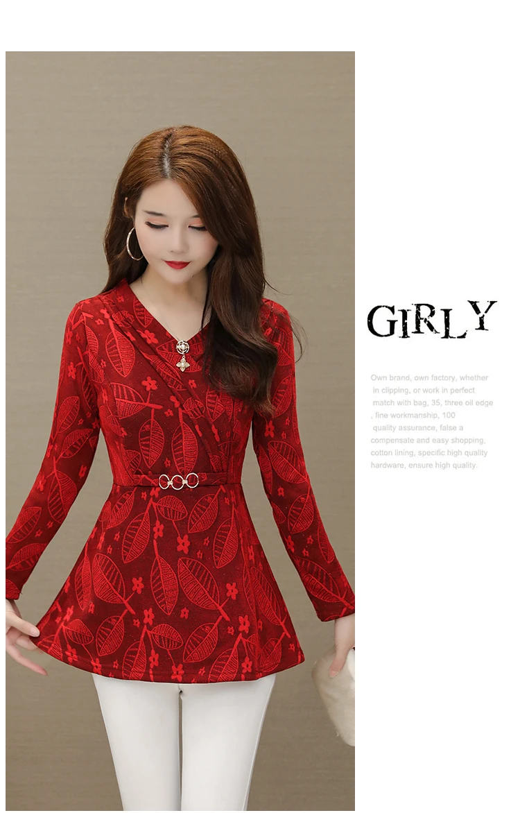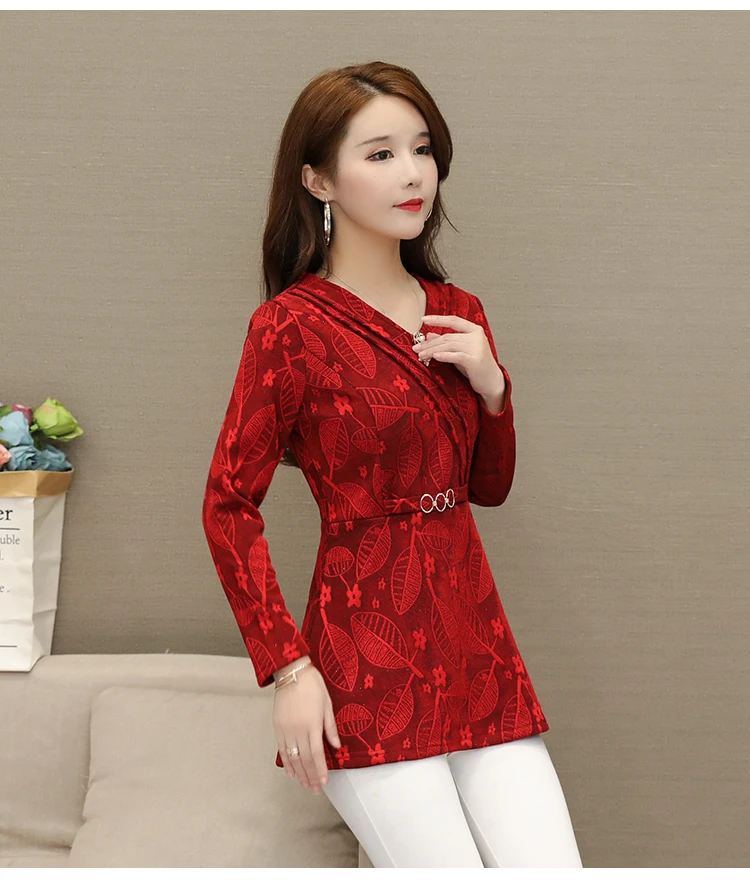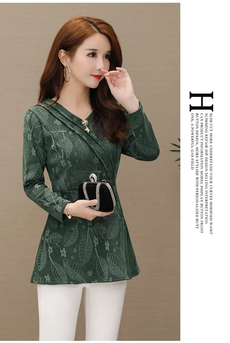Зимние теплые Бархатные Топы для женщин, тонкий трапециевидный дизайн, туника, топ с баской, v-образный вырез, зеленый, Рождественский, красный велюровый, Базовая рубашка, блузка s08