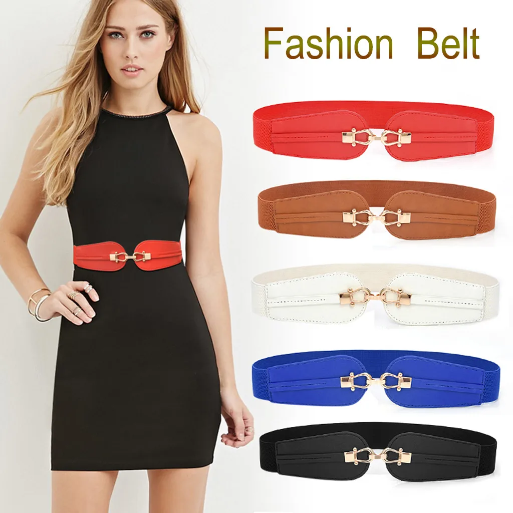 Женская мода Дикий Широкий Пояс эластичное платье-Стретч пояс с пряжкой