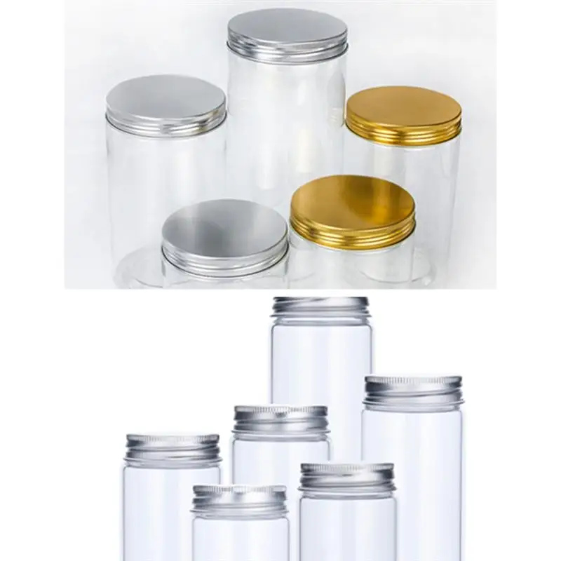6Pcs Kitchen Food Storage Containers Useful Candy Jar Grain Cans Aluminum Screw-On Lids Storage Holder (Golden/Sliver)