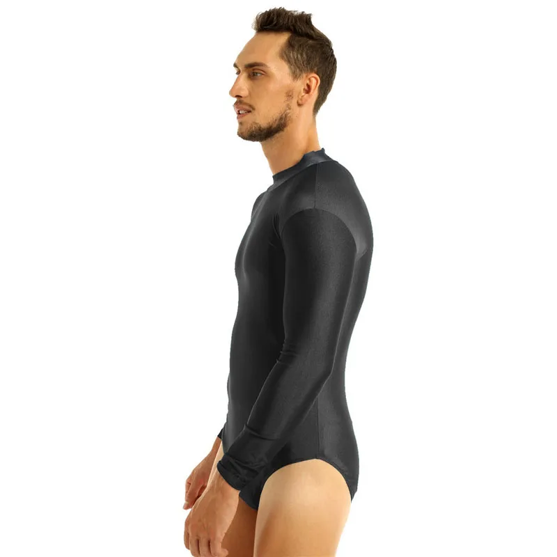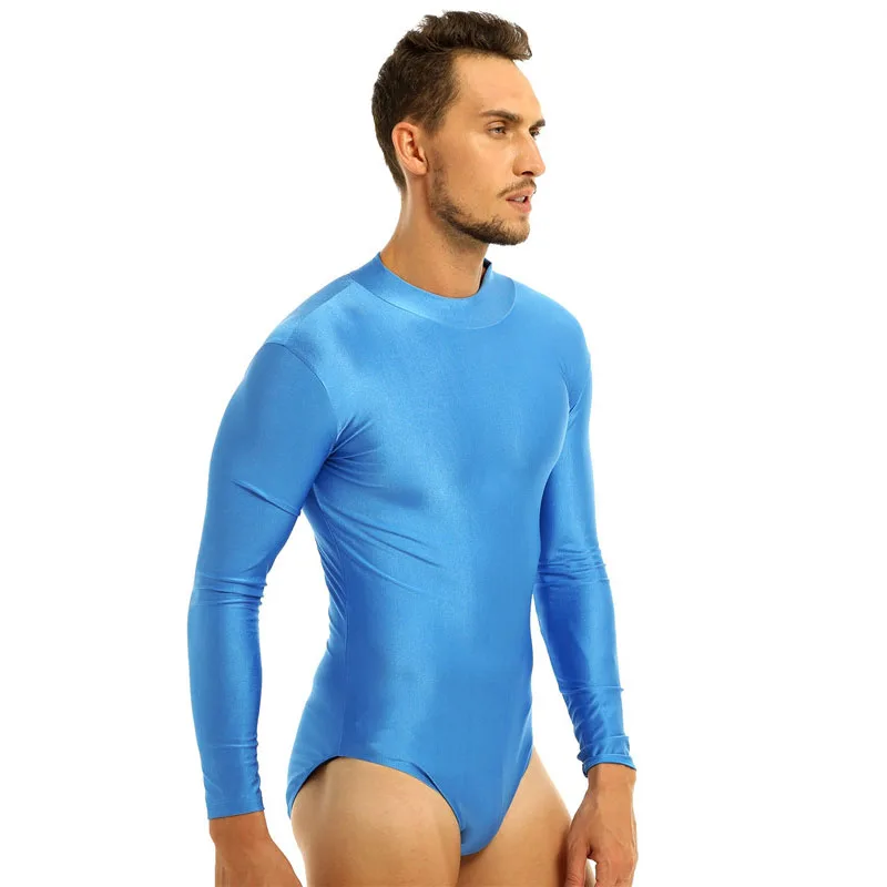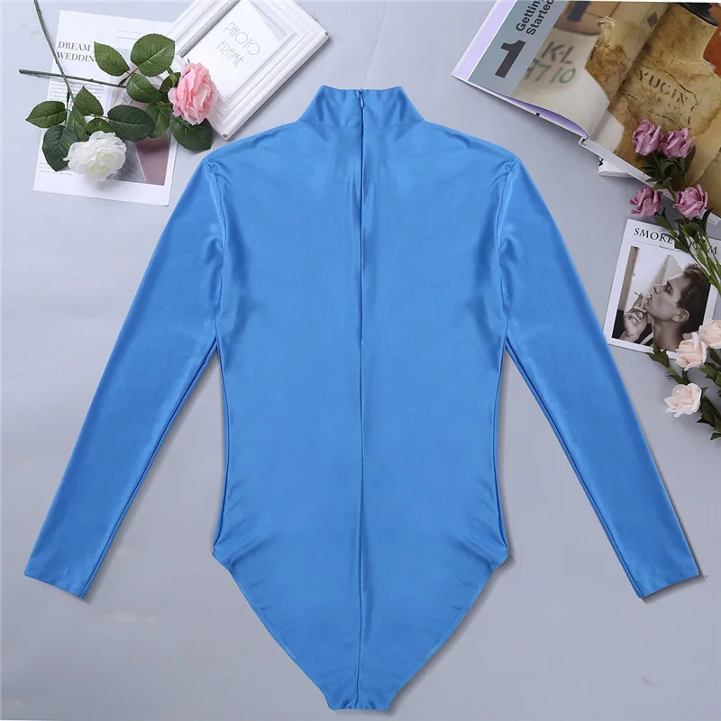Мужской комбинезон с длинным рукавом и стоячим воротником на молнии сзади, эластичный цельный мужской сексуальный купальник, мужской комбинезон для ночных клубов, клубная одежда