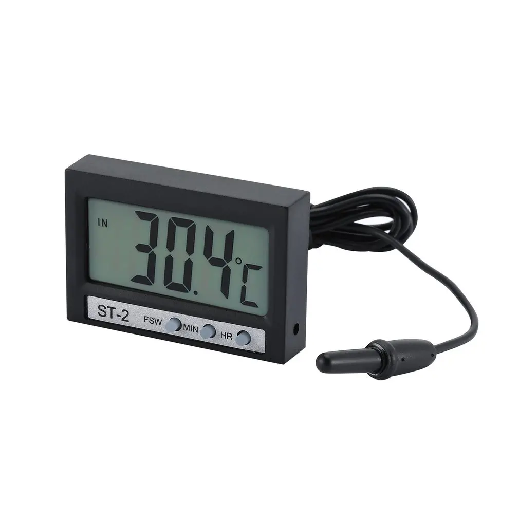 5.Widely Use:Internal and external dual-channel temperature measurement, ideal for air-conditioned, icebox, refrigerator, car, house, fish tank or even the water temperature and body temperature.