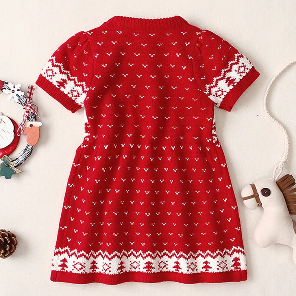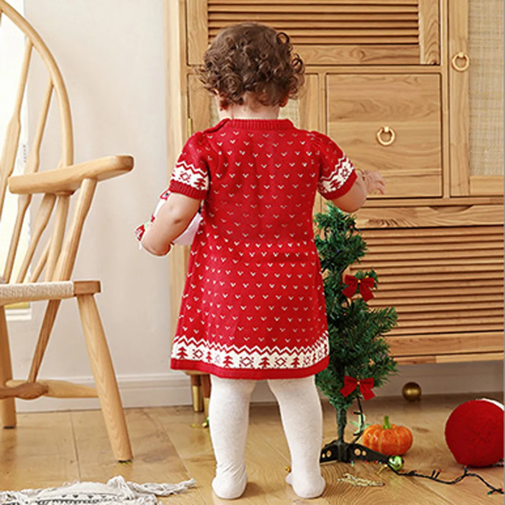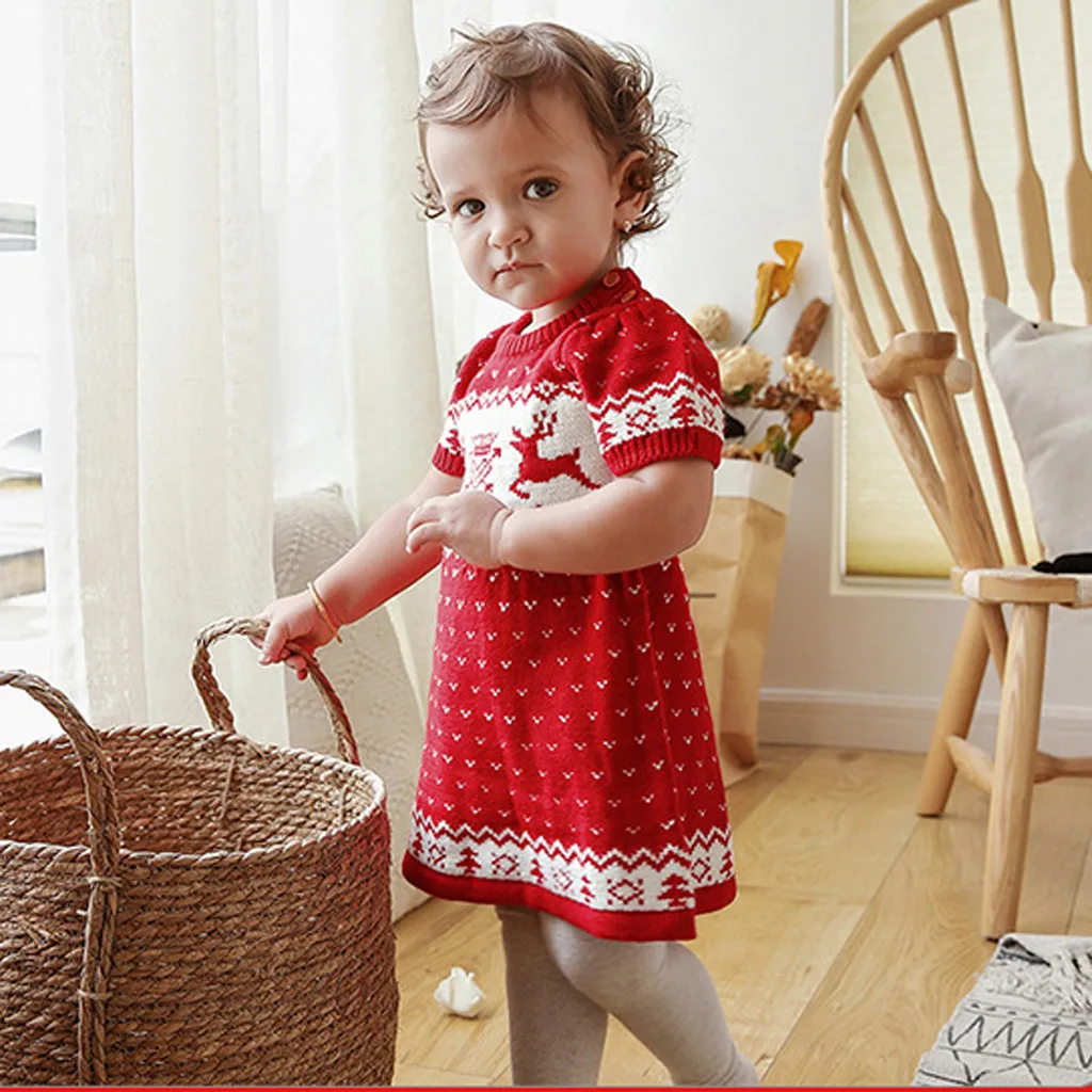 Детское рождественское вязаное праздничное платье принцессы с рисунком оленя для маленьких девочек