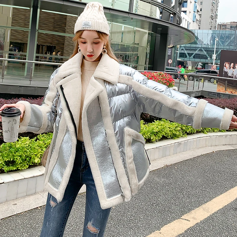 Женское меховое пальто Boollili розовое весеннее из овчины куртка натуральной кожи