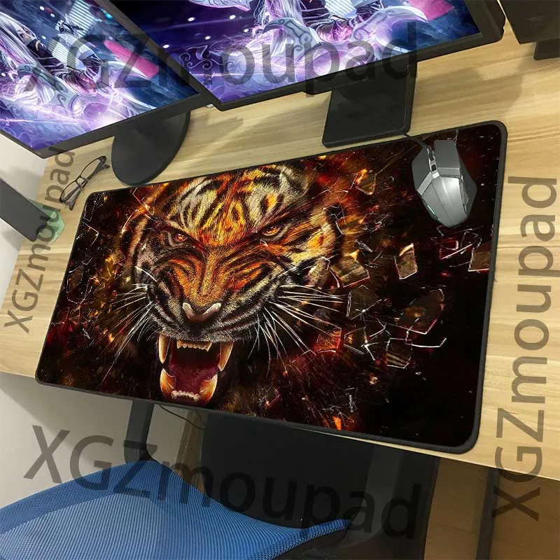 XGZ большой игровой коврик для мыши в виде животного тигра, HD, акварели, черный коврик для компьютерного стола с замочком, Нескользящий Резиновый коврик размера XxlUS $5,75 /
