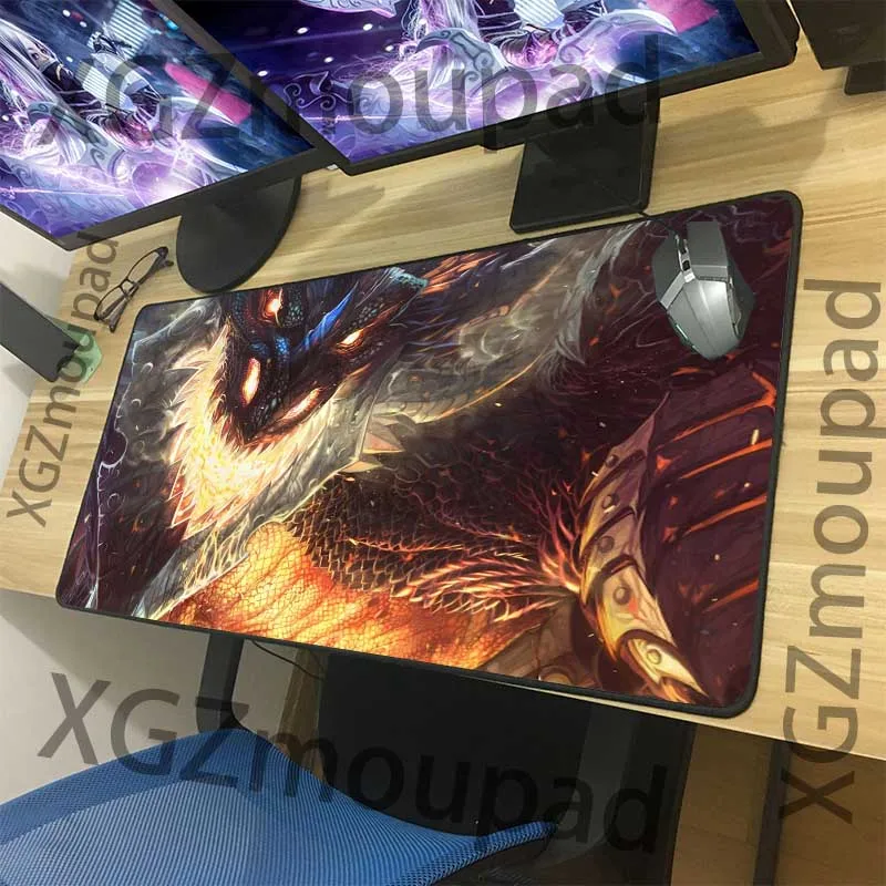 Большой коврик для мыши XGZ по индивидуальному заказу, изысканный черный компьютерный Настольный коврик с замком и кромкой животного, Magma Dragon, нескользящий коврик для Dota Csgo Gamer XxlUS $5,75 /
