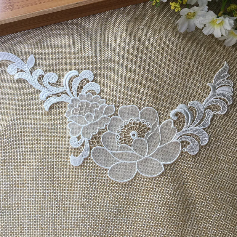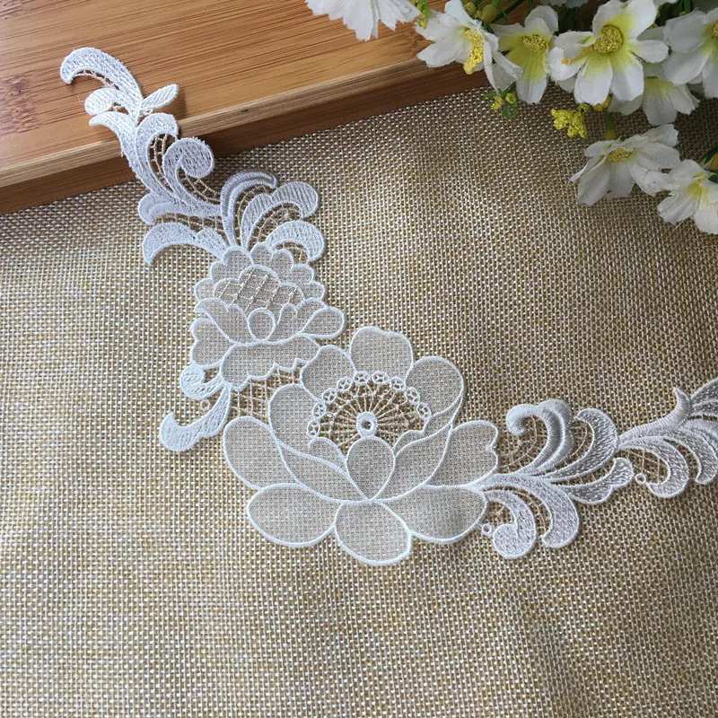 Роскошный Белый Тюль органза гипюр кружевной ткани Аппликации патч 3d Venise вышитые цветы свадебное платье одежда швейный Декор