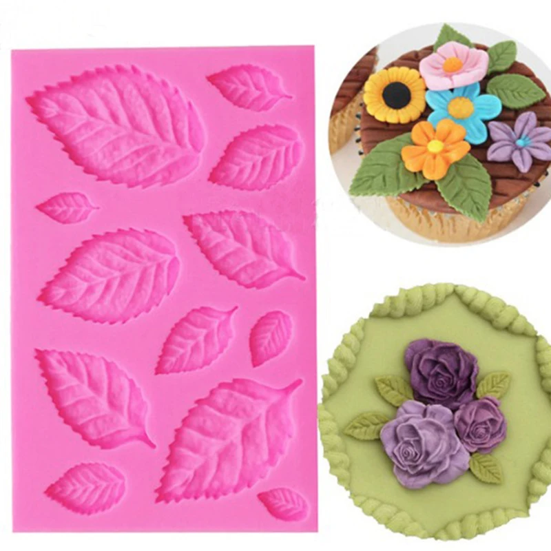 3D силиконовая форма в виде листа, форма для помадки, инструменты для украшения тортов, форма для шоколада, форма для выпечки, детская форма выпечка торта DIY, листья разных размеров