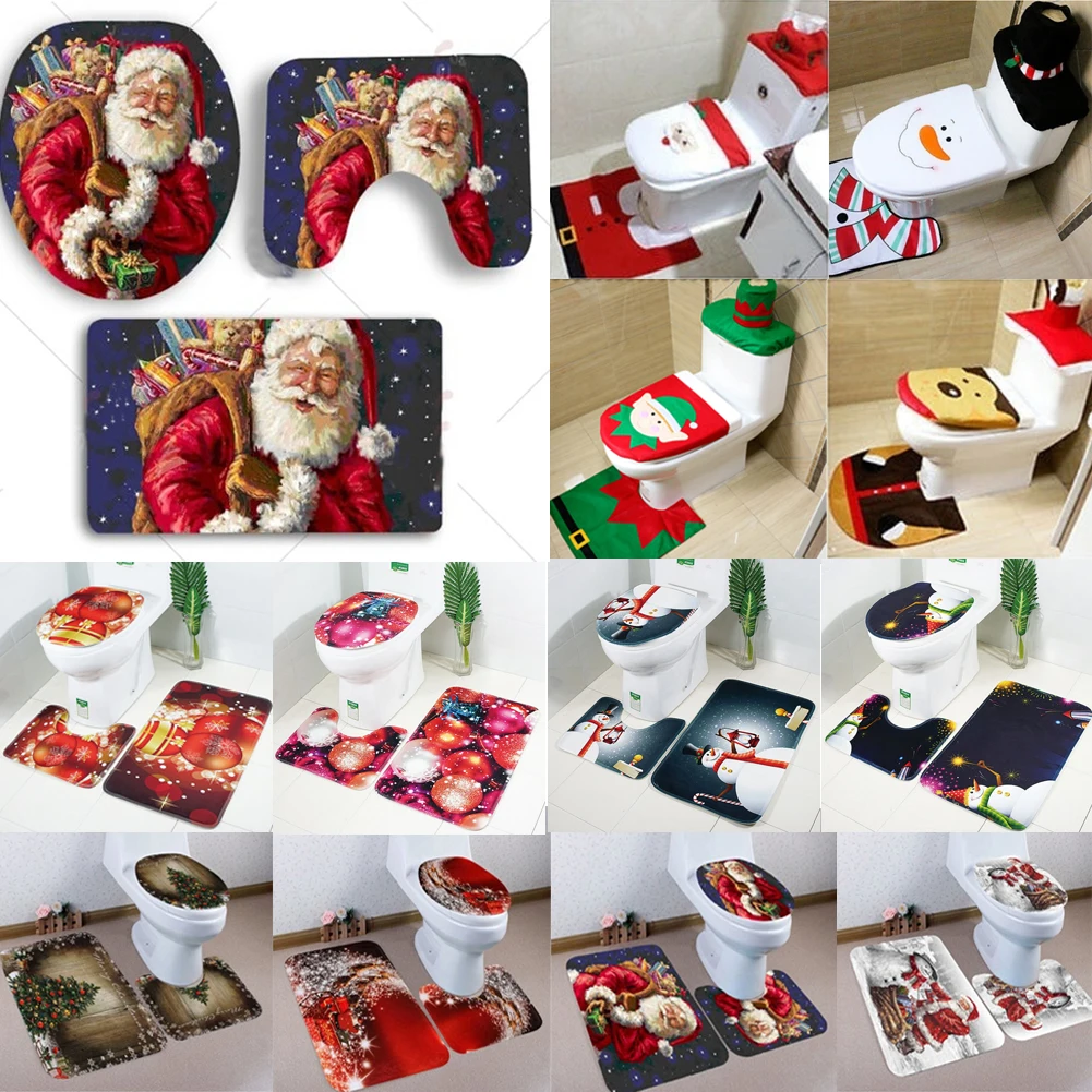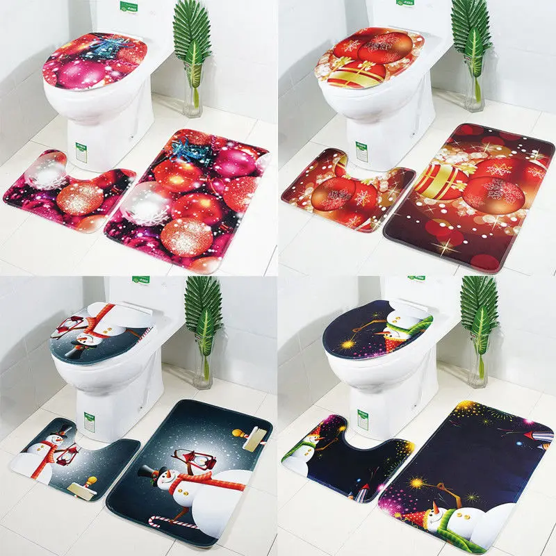 3 шт./компл. рождественское сиденье для унитаза и чехол Санта Клаус коврик для ванной комнаты рождественский милый ДекорРазмер: Снеговик, сани,Санта Клаус,Рождество TreE Крышка унитаза: 38 см * 43 см Коврик на пьедестал: 40*50 см Коврик для ванной: 50*80 см