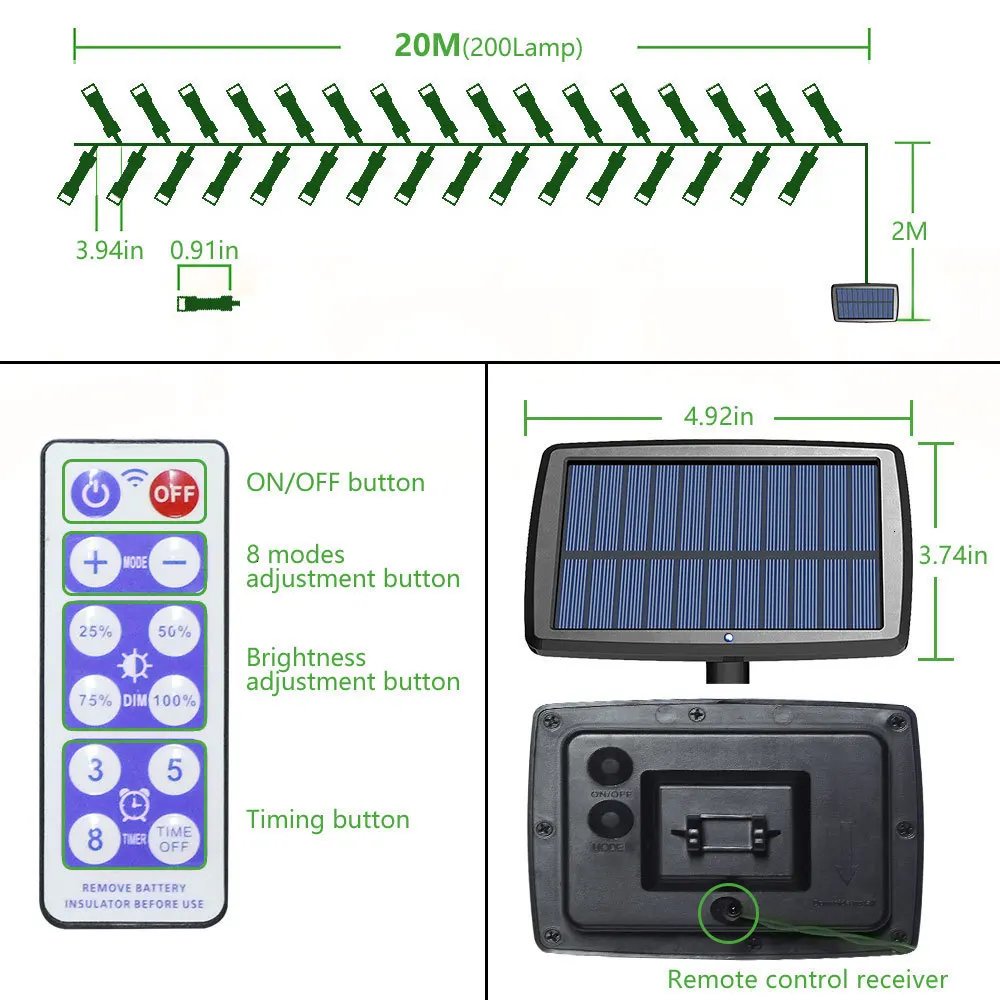 Binval Модернизированный 200LED Солнечный струнный Сказочный Рождественский светильник IP65 атмосферный светильник для наружного Патио лужайки пульт дистанционного управления/функция памяти