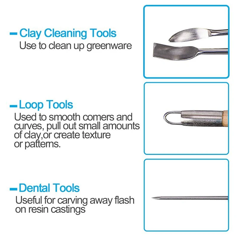 Высокое качество дизайна для длительного использования, легко чистить и хранить. Идеально подходит для резьбы, скульптуры, формирования, моделирования, резки, соскабливания, чистки, сглаживания, очистки и т. Д. В процессе производства глиняных изделий. Подходит для начинающих и специалистов. У каждого работника должен быть один. Легкая и удобная конструкция делает ваш дизайн намного проще.