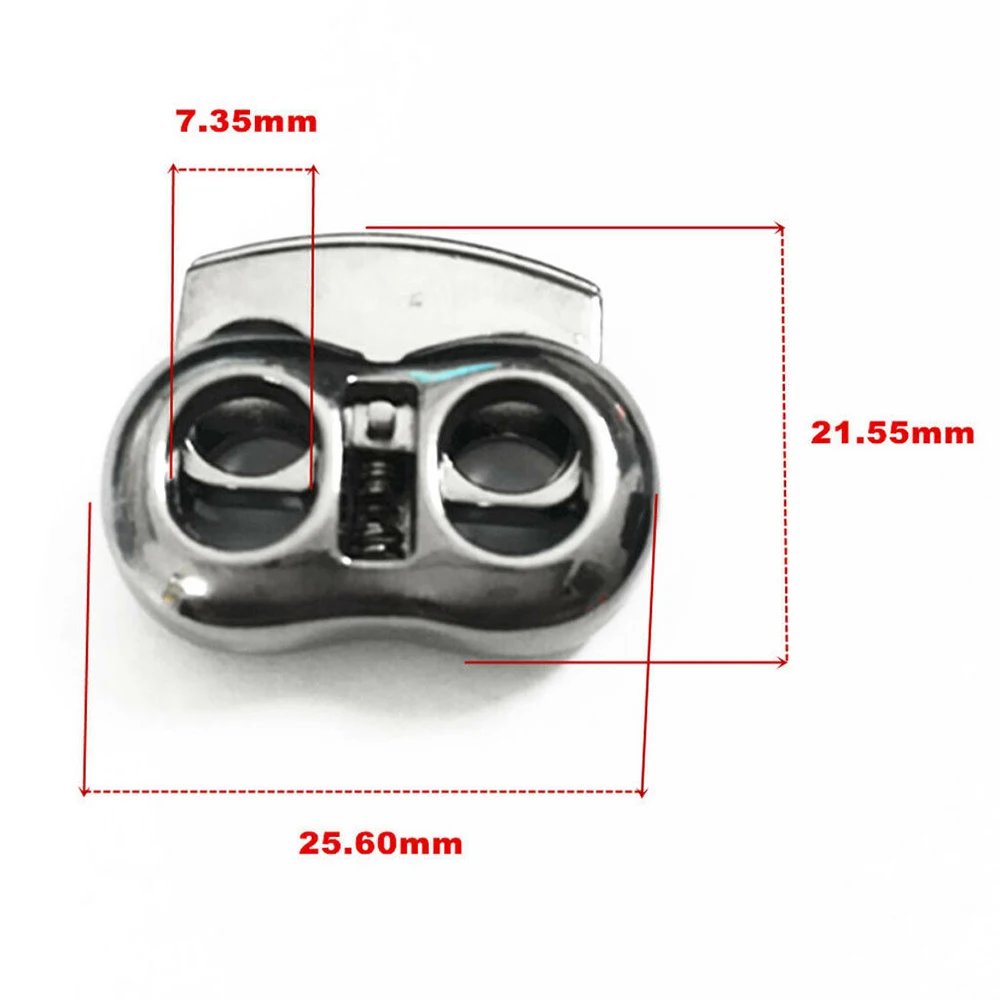 Description: 10Pcs Gray Zinc Alloy Toggles Spring Stop Oval Bean 2 Big Holes Drawstring Rope Cord Locks Widely used for cords of luggage, clothing, backpack, tent and more, can easily lock the cord tightly Material: Zinc Alloy Dimensions: Approx. 23.6 x 21.55 x 8 mm / 0.93 x 0.85 x 0.31 inch Hole Diameter: Approx. 7.35 mm / 0.3 inch Package Includes: 10 Pieces Oval Bean Cord Locks Note: Due to the differences between different monitors, the picture may not reflect the actual color. There is 2-3% difference according to manual measurement, please check the size carefully before you buy the item.