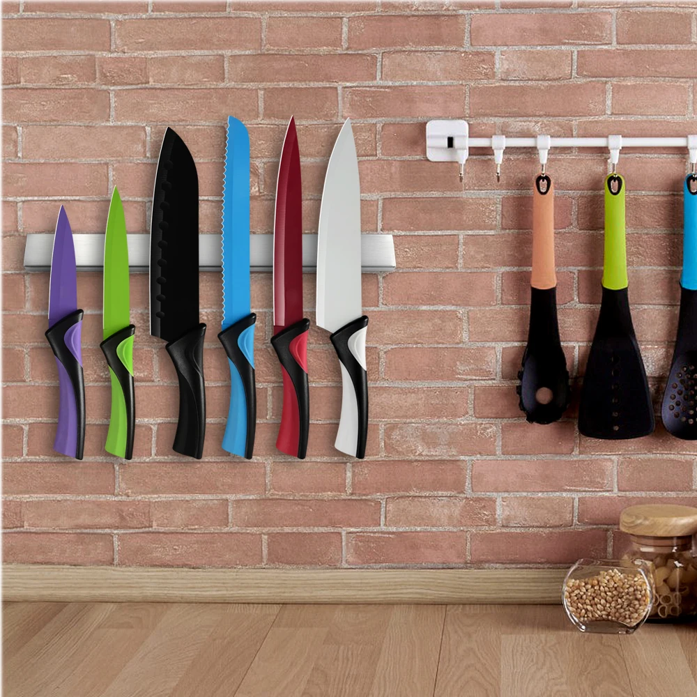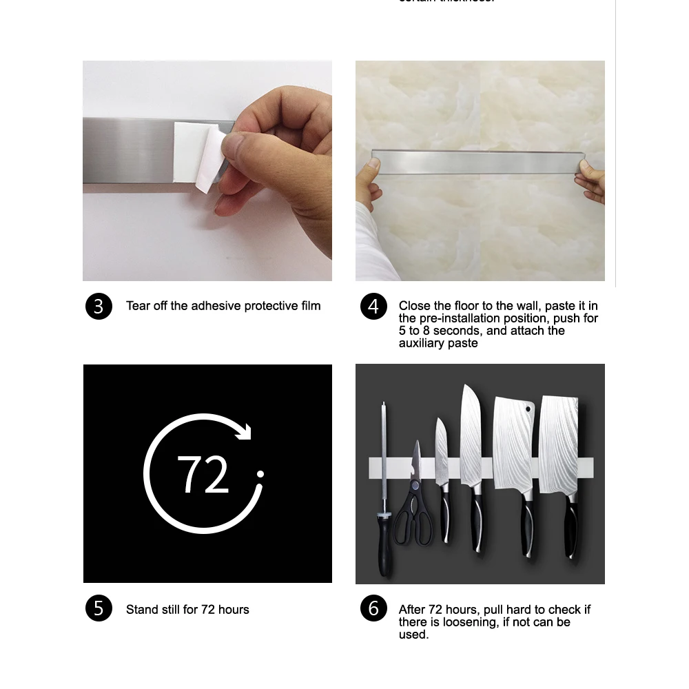 Магнитные ручки для ножей надежно закреплены, но легко выпускаются ножи, кухонные гаджеты и инструменты. Компактный, удобный и практичный держатель. Идеально подходит для кухни, мастерской или гаража. Большая емкость, может храниться до 6-8 штук ножей. Подставка для кухонного ножа из нержавеющей стали, прочная Спецификация: Материал держателя ножа: нержавеющая сталь 304 Посылка включает в себя: 1*50 см держатель ножа Обратите внимание: Из-за различных методов измерения размер и вес продукта могут иметь небольшую погрешность.