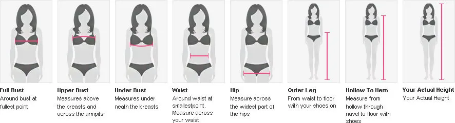 A perfect-fitting dress starts with perfect measurements. Before ordering a made-to-measure dress from DHgate.com, we strongly encourage finding a professional local tailor who can help you measure accurately. Here, we'll show you which measurements are needed and how to correctly take them. Warning: measuring yourself at home is trickier than you think! For best results, always have your measurements taken by a professional local tailor. | |||||||||||||||||||||