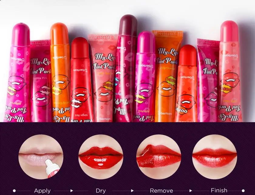 12 часов не выцветает и не размазывает тинт для губ, отшелушивает Тип Тинта для губ.