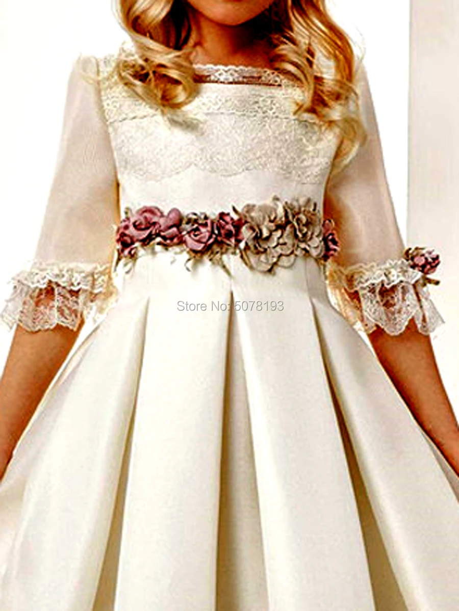 Это платье с цветочным узором для девочек изготовлено из матового атласа и подкладки. Оно имеет красивый и модный дизайн и красивые аппликации на юбке. Пусть это сделает вас красивой цветочной девочкой.