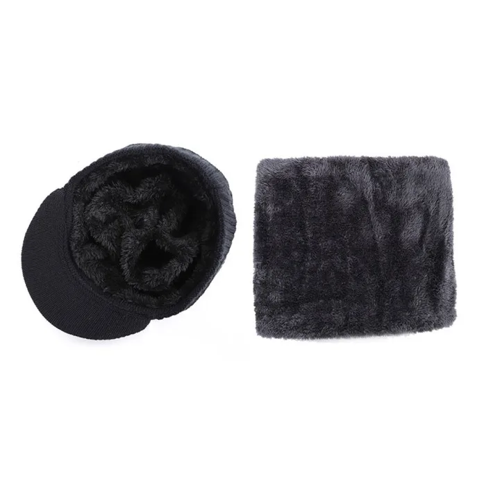 Новинка, Мужская зимняя теплая шапка, вязаная кепка с флисовой подкладкой, мягкая дышащая шапка с шарфом, набор петель, IR-ing