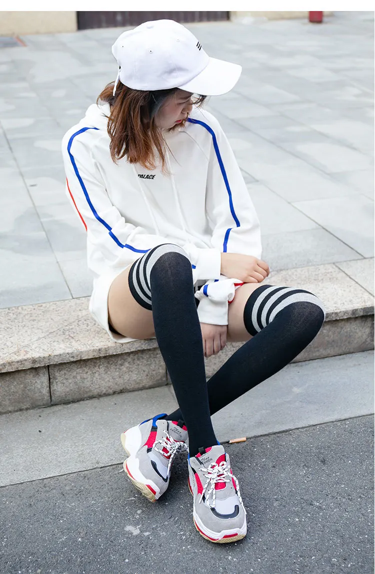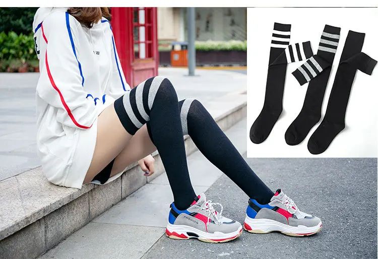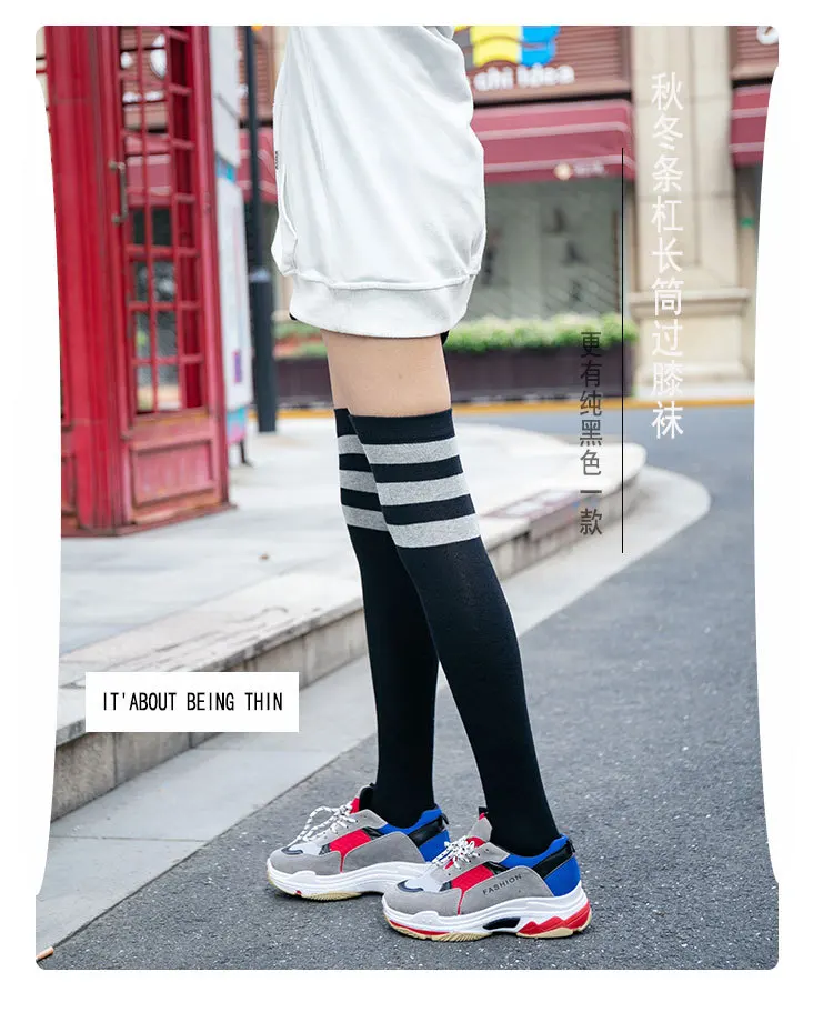 Женские гольфы CA099, однотонные полосатые сексуальные гетры из мягкого хлопка, тонкие черные, носки до бедер