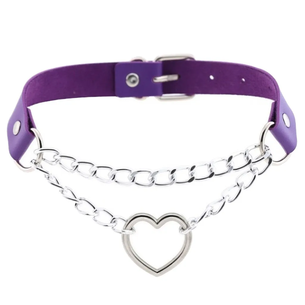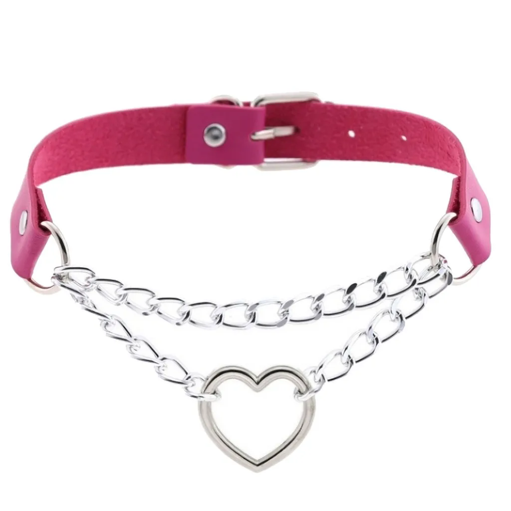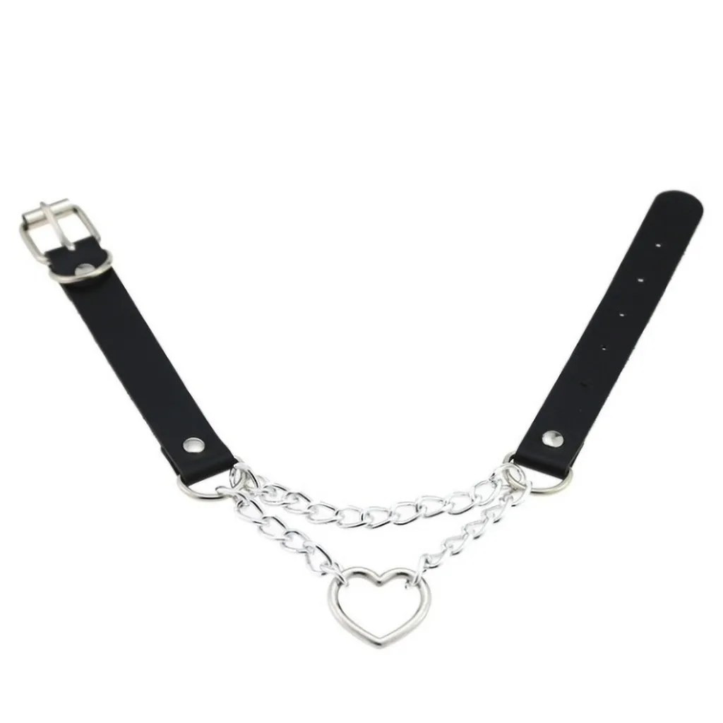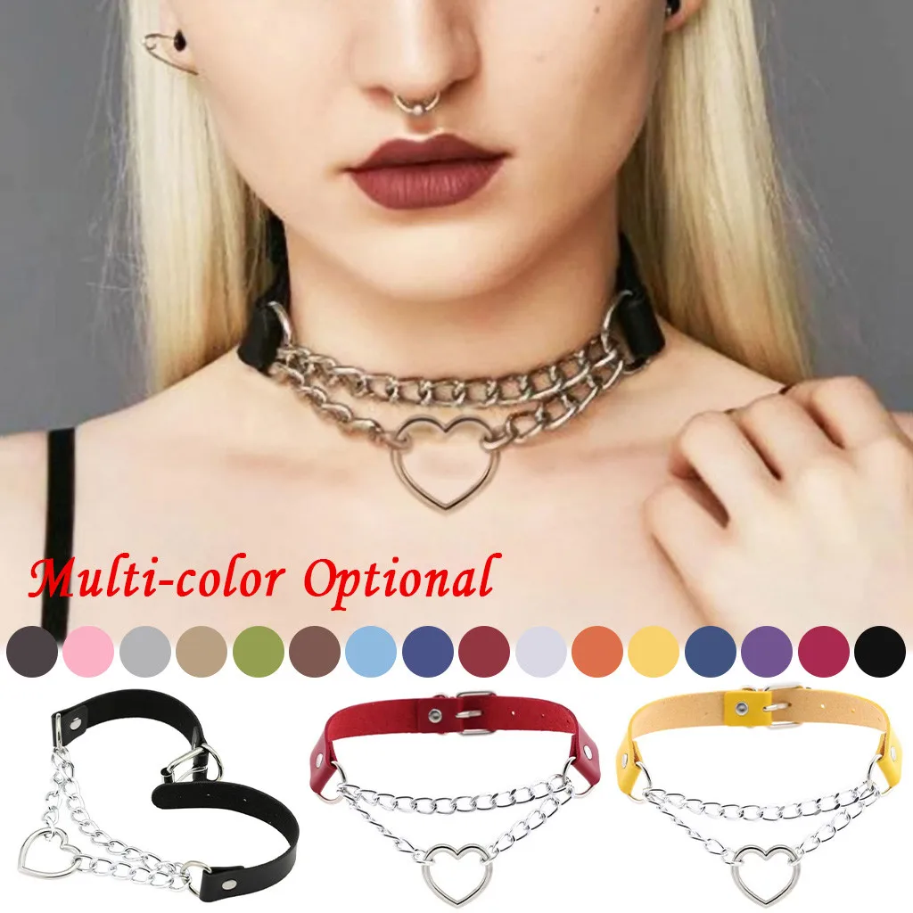 Женская цепочка подвеска ожерелья в форме сердца металлический кожаный ошейник ожерелье-бондаж