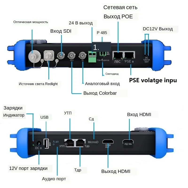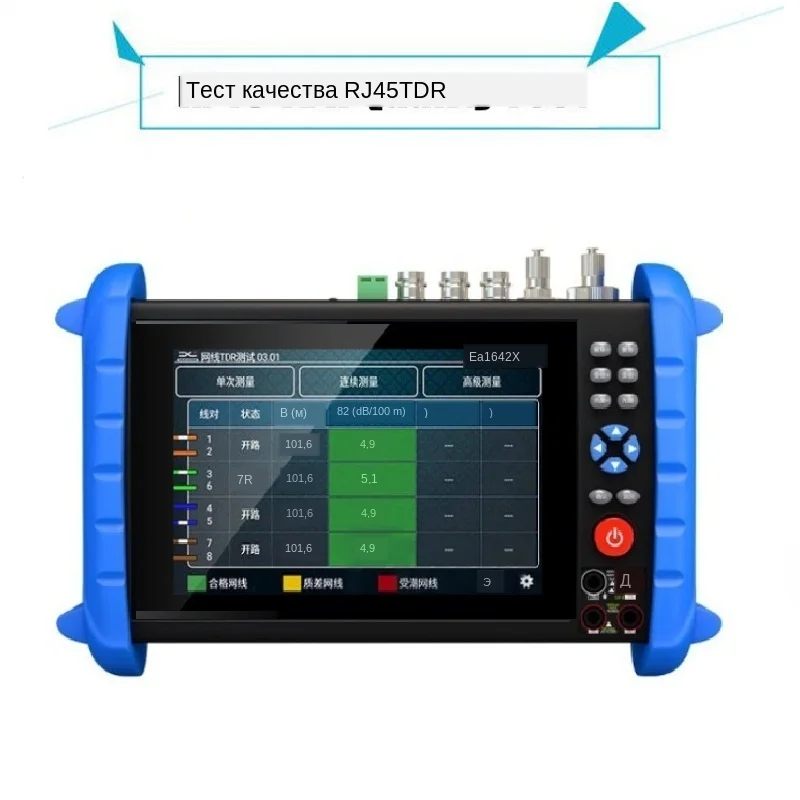 1. 7 дюймов сенсорный экран, 1920*1200 разрешение. 2. Емкостный сенсорный экран, экранное меню, 3. Сенсорный экран и ключевая работа 4. Встроенный wifi, Беспроводная сетевая камера тест 5. Поддержка MAX 8MP 5MP 4MP 2MP HD камера 6. Поддержка ONVIF камеры и Поддержка DAHUA, KEDA, samsung, HIKVISION и TIANDY камеры. И т. Д. 7. Поддержка мобильного телефона или мобильного клиентского программного обеспечения производителей ip-камер. 8. Изображение может вращаться на 180 градусов 9. Отображение реального разрешения изображения ip-камеры 10. Видео скриншот, запись видео, файлы с именем и сохранением, легко найти 11. Поддержка 1080 P HD видеофайлов и MKV/MP4 медиа-файлов 12. CVBS тест, фотография, запись видео, Воспроизведение записи 13. Цифровой видеовыход, Аналоговый видеовыход и тестирование вывода изображения 14. Измерение напряжения POE, проверка PING, сканирование ip-адресов, мигающий порт и т. Д. 15. PoE DC48V выходная мощность, максимальная мощность 24 Вт; 16. Выходная мощность 12 В/2 А 17. Выходная мощность 5 в 2 А, как внешний аккумулятор 18. HDMI вход, разрешение 1920*1080 P; (5 в 1 плюс и полные функциональные версии включены) 19. Аудио вход/выход 20. Светодиодный светильник, калькуляторы, музыкальные плееры и другие инструменты 21. Литий-ионный полимерный аккумулятор, 7600 мАч, время работы длится 7-10 часов Полный Функция версия: Тест видеосигнала CVBS: это аналоговый сигнал; да! Тест видеосигнала CVI: да! Тест видеосигнала TVI: да! Тест видеосигнала AHD: да! Тест сигнала IPC: да! Оптический измеритель мощности: да! Визуальный дефектоскоп: да! Тест кабеля TDR: да! Вход HDMI: да! Мультиметр тест: да!