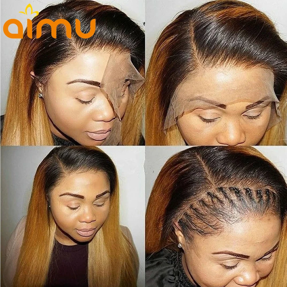 13x6 глубокая часть кружева передние человеческие волосы парики Омбре цветные прямые HD прозрачные кружевные передние al парик предварительно сорванные бразильские волосы remy