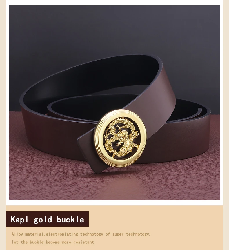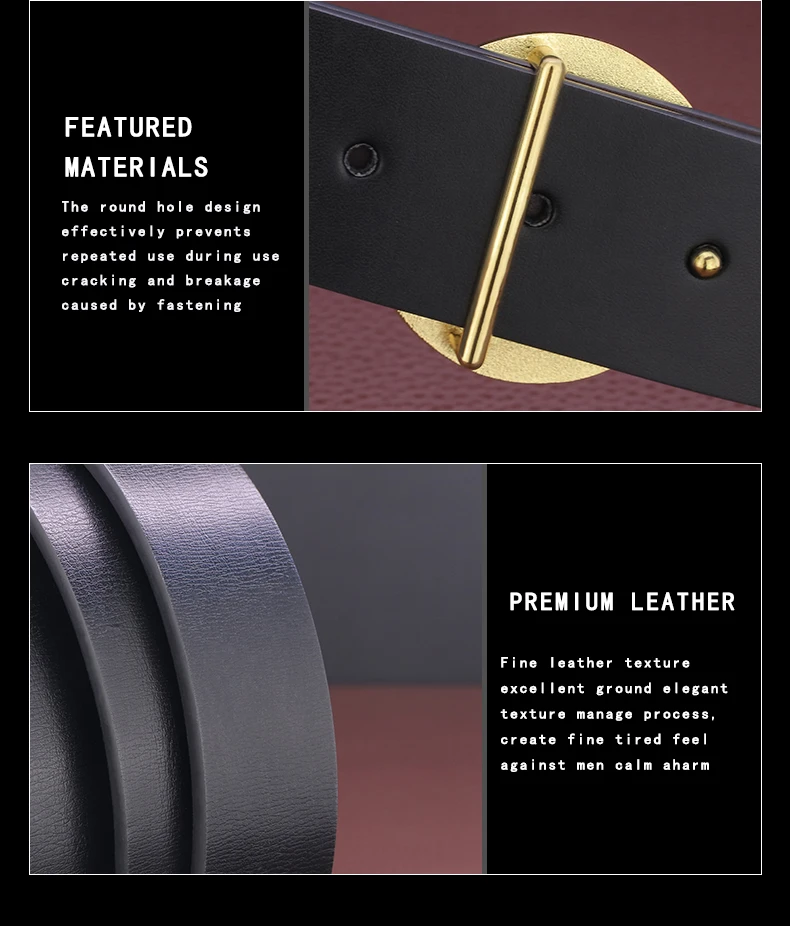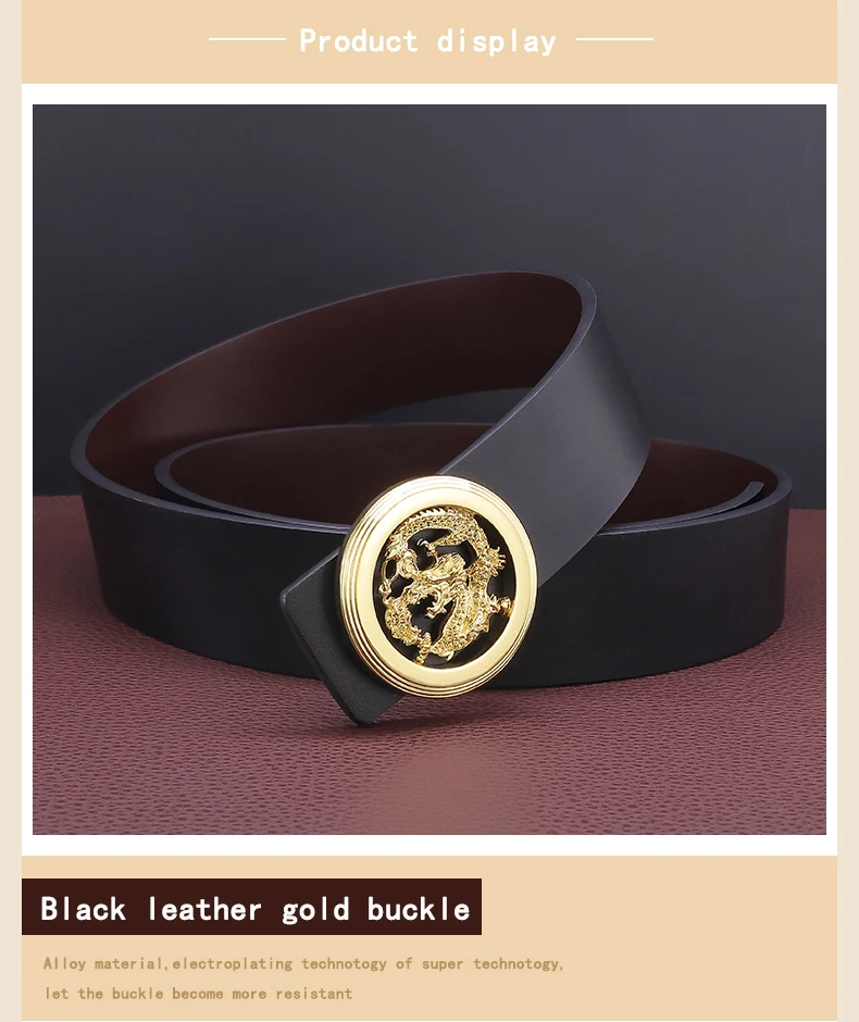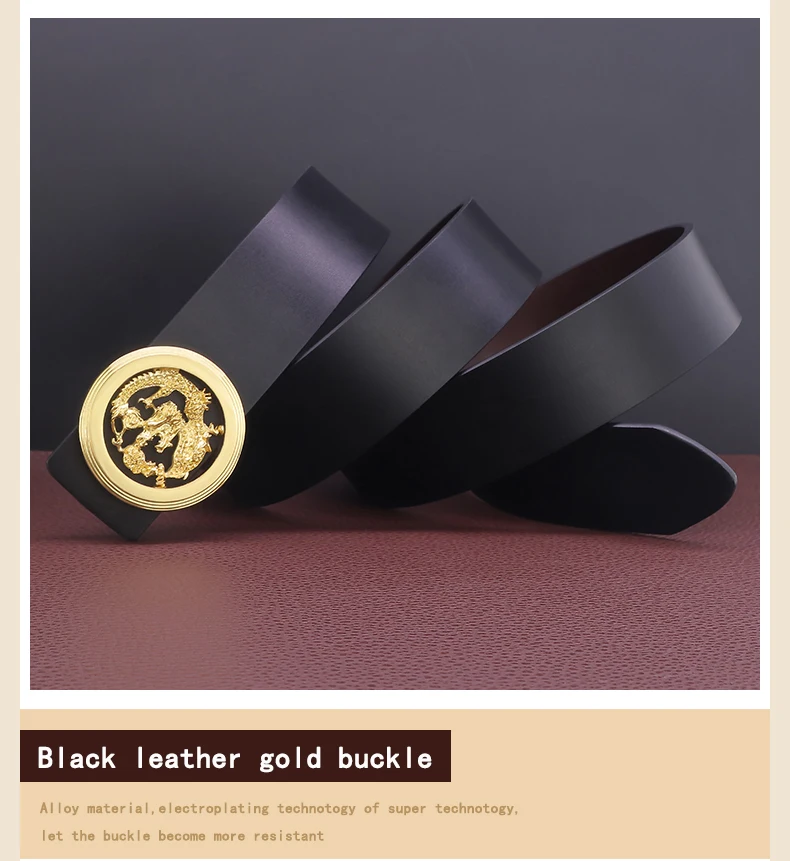 Мужской ремень из воловьей кожи Barry.Wang черный дизайнерский с золотой пряжкой