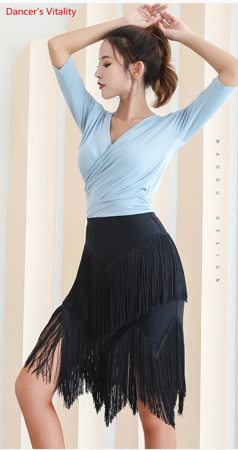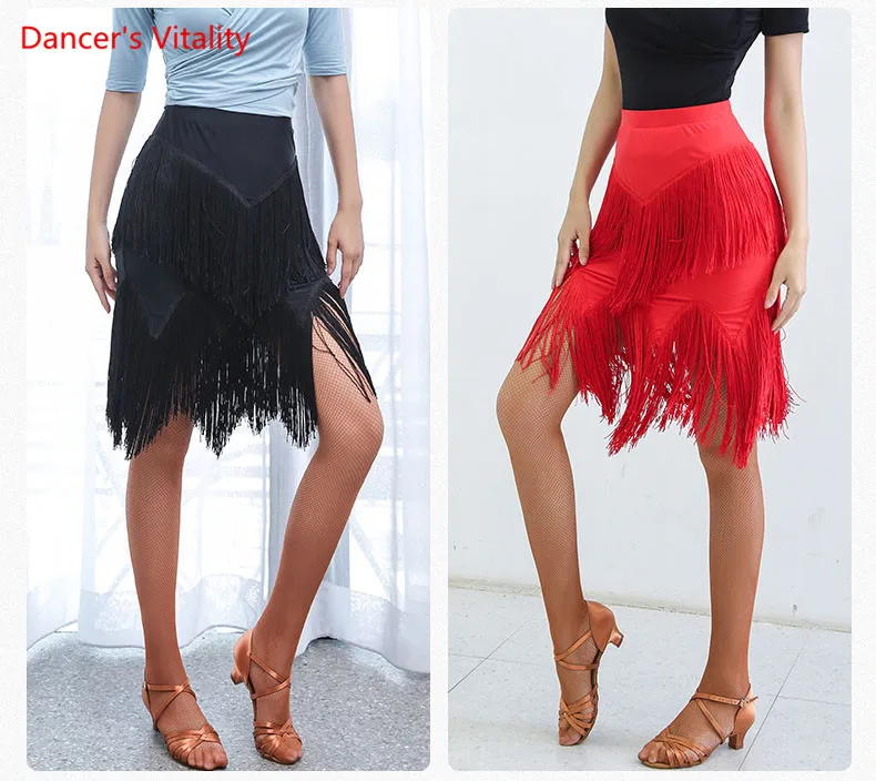 Одежда для упражнений для латинских танцев, Новая женская сексуальная юбка с кисточками для взрослых, одежда для занятий танцами