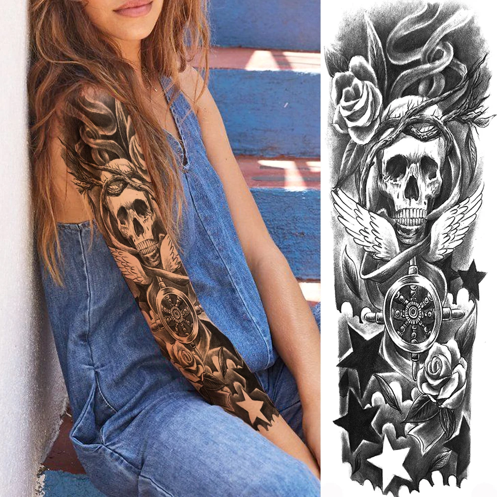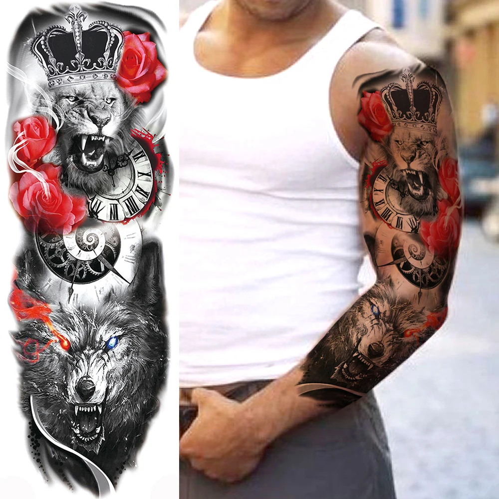 1 шт. Временные татуировки с красными цветами для мужчин, женщин, мужчин, взрослых, боди-арт, полный рукав, розовая татуировка, переводная татуировка, наклейки с орлом