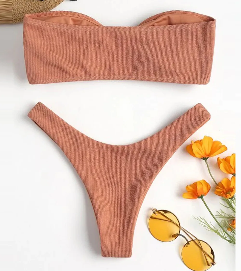 Женский сексуальный однотонный купальник пуш-ап, модный пляжный бикини, купальный костюм