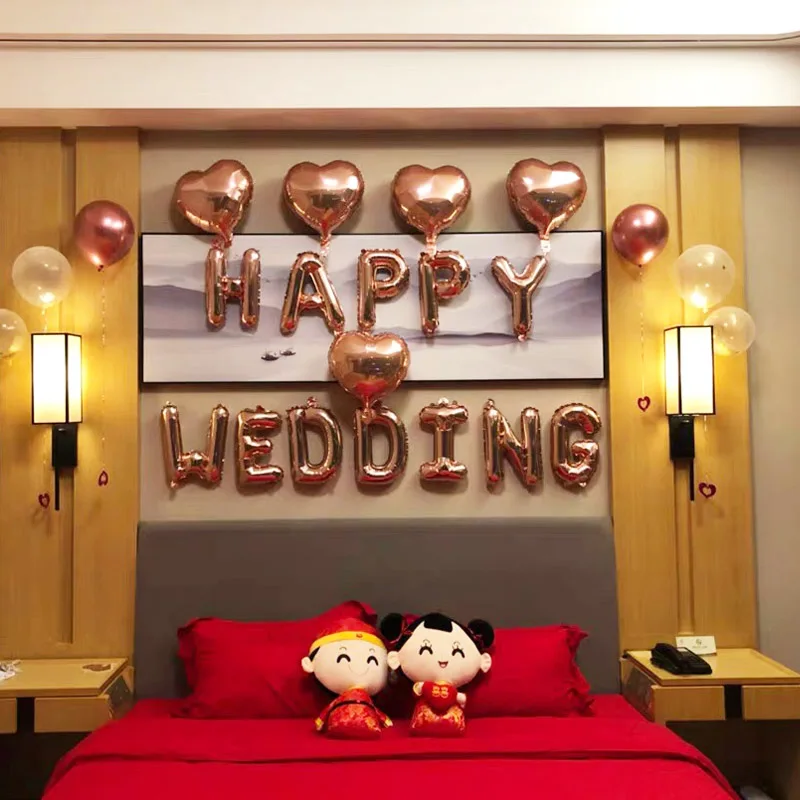 Материал: Высококачественная алюминиевая фольга; Цвет: розовое золото/серебро/розовый; Размер: 16 дюймов; Посылка включает в себя: 1 набор счастливых свадебных шаров