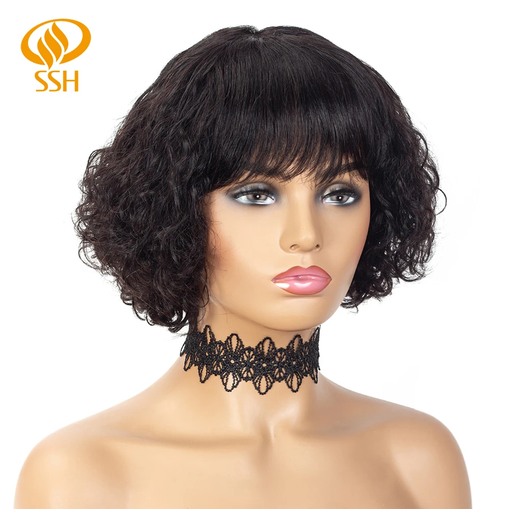 Фирменное наименование: SSH Модель: короткий парик с челкой Материал: 100% человеческие волосы Цвет волос: # 1B (черный) Основной материал: эластичное кружево Кепки Размеры: обхват Кепки составляет 22-22,5 дюймов Длина: 8 дюймов Срок службы: не менее 1 года при надлежащем уходе