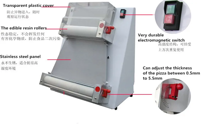 This machine is a professional dough press machine for pizza. Machine is a high-performance machine that takes up very little counter space and is perfect for pizzashop. The simplicity of the machinemeans that untrained employees can create upwards of 250 crusts per hour of uniform thickness and shape.