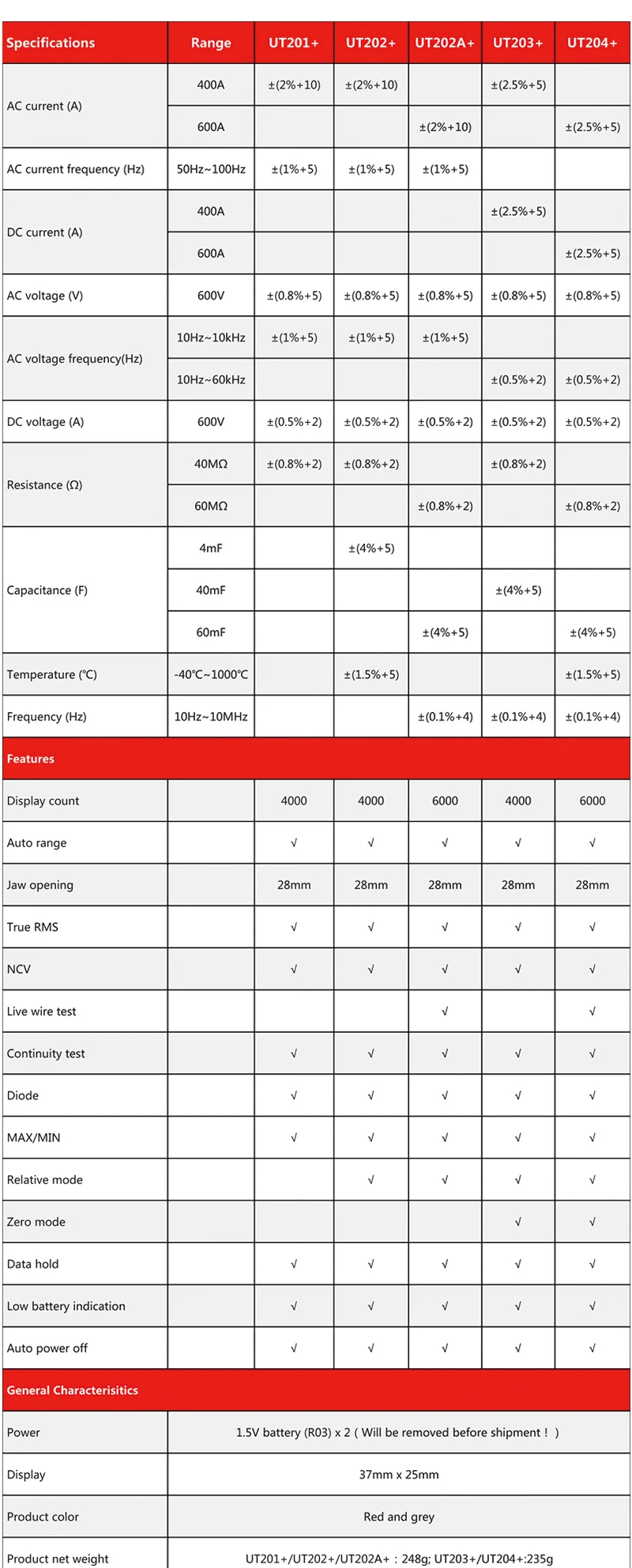 1. Промышленное электричество 2. Жилое электричество 3. Кондиционер 4. Автомобиль| Технические характеристики | Диапазон | UT202A + |