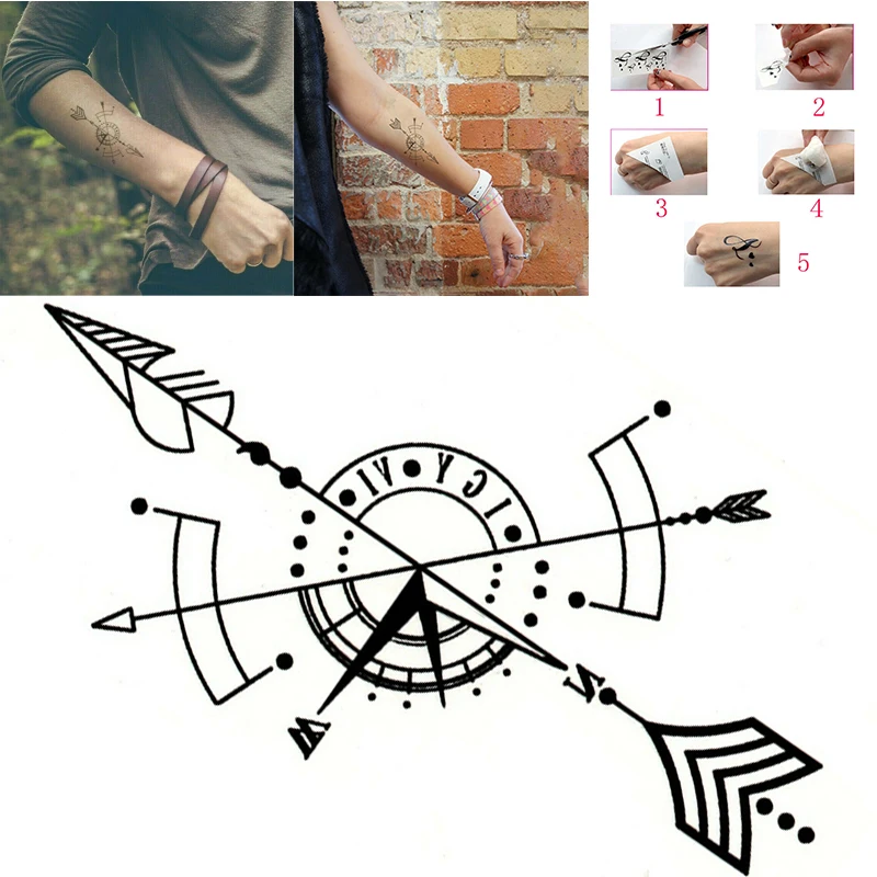 Креативные геометрические татуировки стрелы компаса черного цвета.