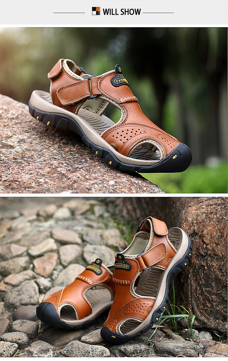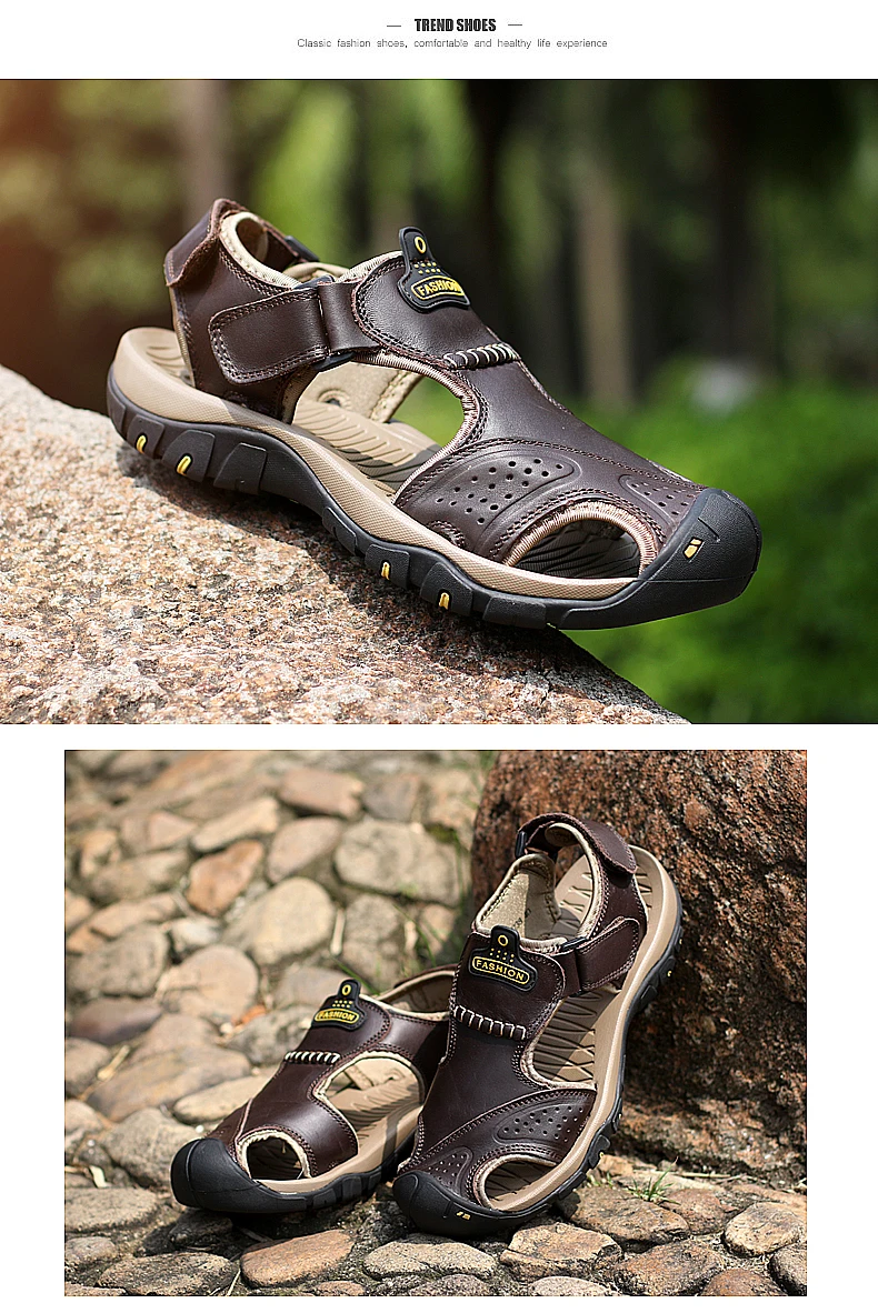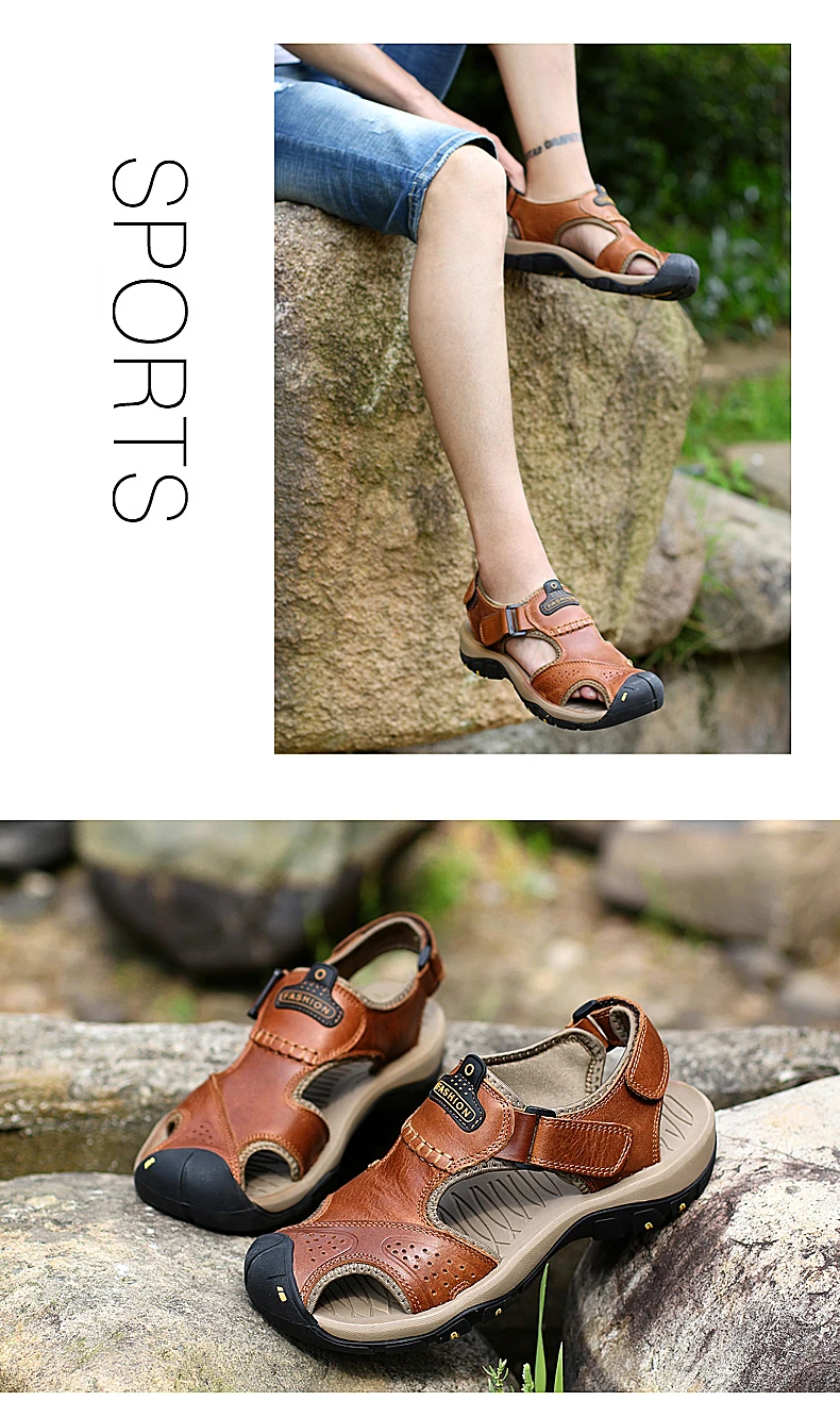 Летние мужские сандалии повседневная обувь из натуральной кожи мужские пляжные сандалии в римском стиле брендовая мужская летняя обувь Большие размеры 39-47