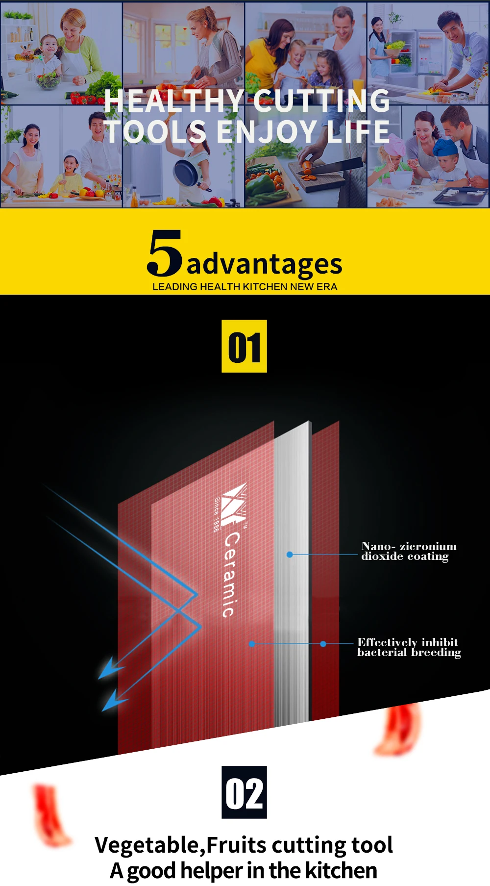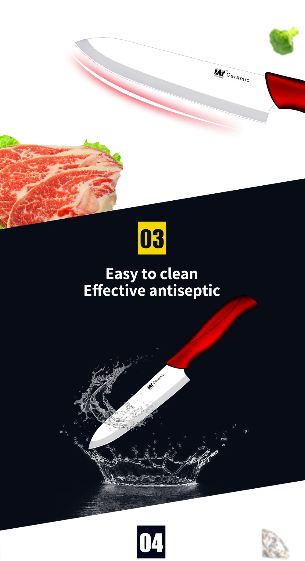 Предназначено для резки фруктов, овощей и бескостного мяса, не предназначено для подделки, сгибания, насильственного измельчения или склеивания. Использоваться на пластиковой или деревянной разделочной доске и избегать резки замороженных продуктов или на поверхности мрамора, стекла и стальной доски. Мойте нож после каждого использования, желательно вручную с мягким моющим средством и не мойте его в посудомоечной машине. Для безопасности наконечник и пятка лезвия были повреждены.
