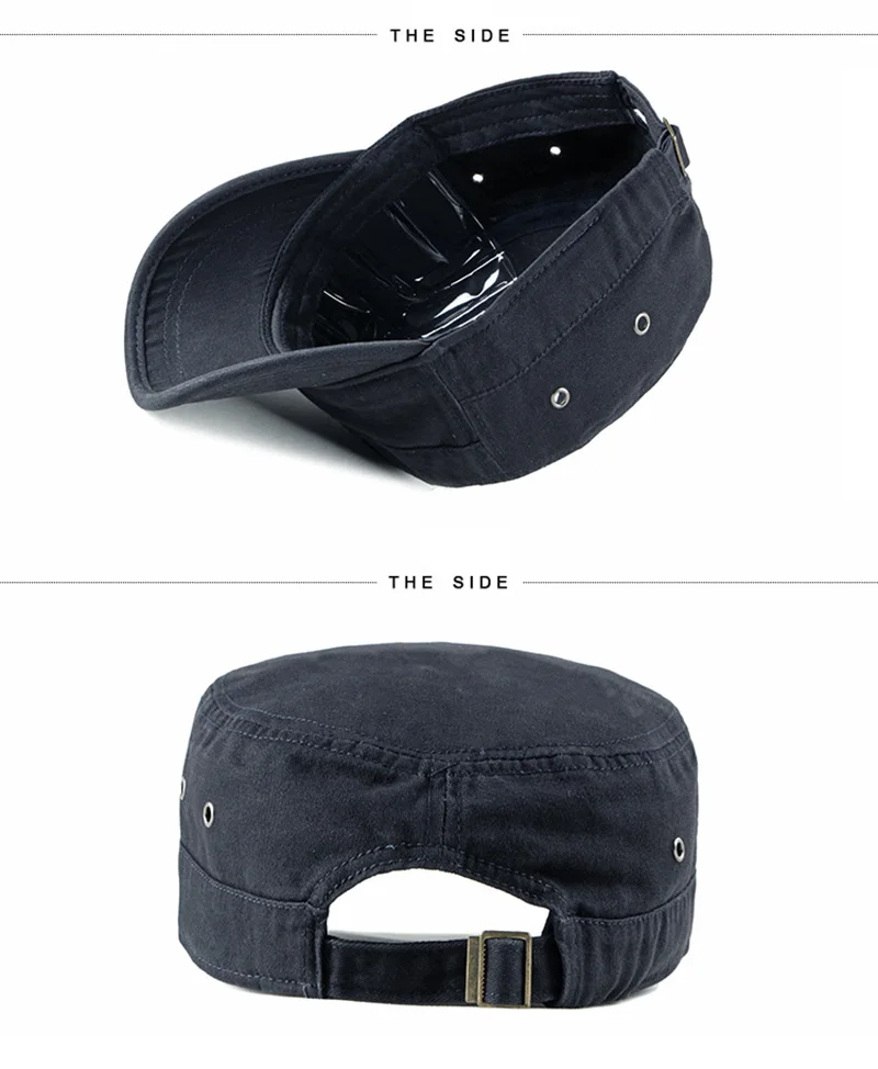 Vintage Spring Summer Flat Top Baseball Hats Outdoor Military Hat Men Women Washed Army Cap Solid Black Green Visor