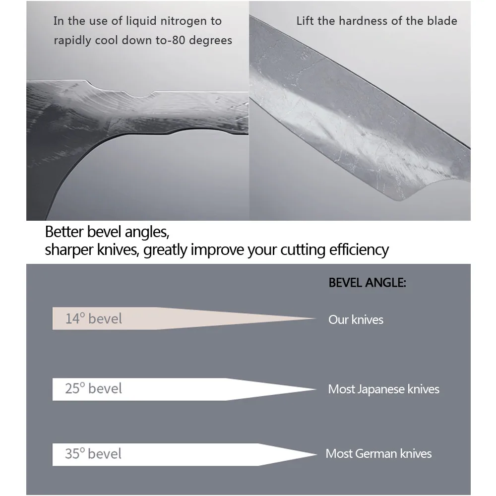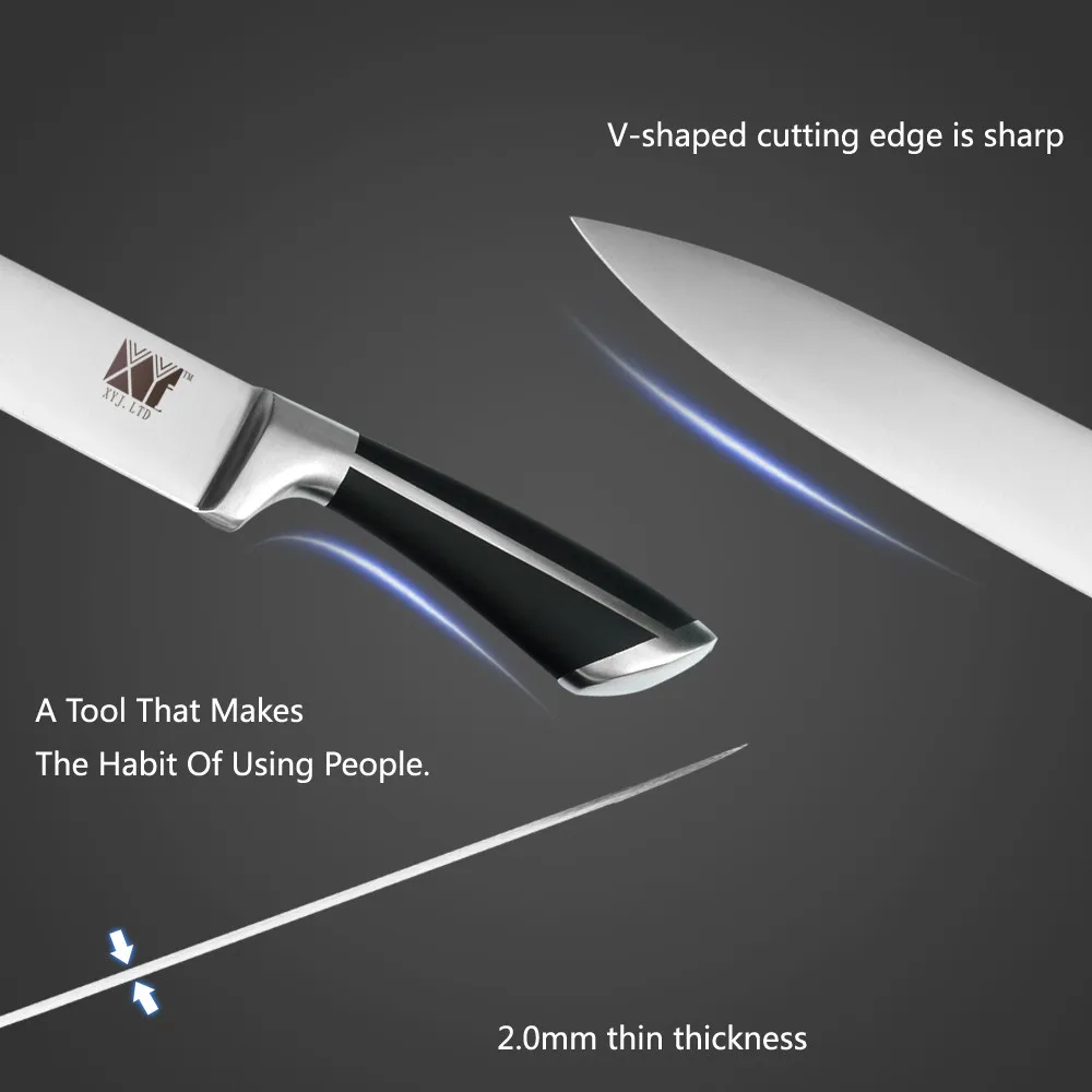 1. Пожалуйста, не помещайте в посудомоечную машину. 2. Пожалуйста, держите его подальше от детей. 3. Пожалуйста, не держите край и точку ножа нацелены на людей. 4. Пожалуйста, не ловите нож вручную, когда нож опускается. 5. Пожалуйста, очистите и высушите нож после использования и поместите его в сухое место. 6. Лезвие очень остро, пожалуйста, не используйте палец, чтобы проверить остроту ножа. 7. Из-за различных методов измерения и партии продукции размер и вес продукта могут иметь небольшую погрешность.