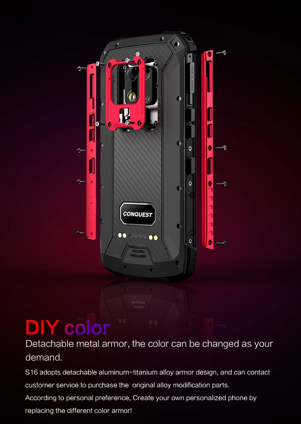Комплектация: Телефон 1 xConquest s16 2 x USB-кабеля типа C 1 Руководство пользователя 1 штырь для SIM-карты 1 xАдаптер Список подарков: 1 xМагнитная док-станция 1 X Магнитный кабель 1 шт. веревки 1 X Беспроводное зарядное устройство |