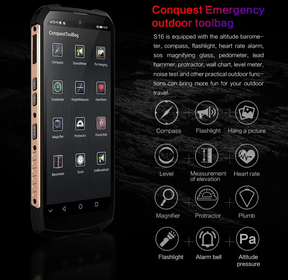 | Время работы в режиме ожидания:800 часов | IP LEvel: IP68/водонепроницаемый/пыленепроницаемый/ударопрочный/MIL-STD-810G | |