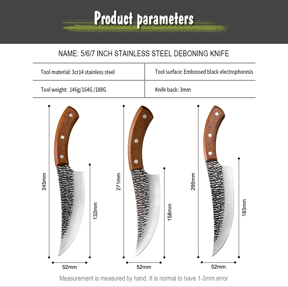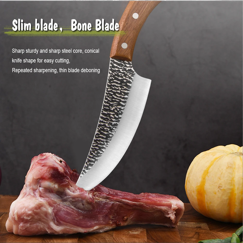 Материал: марганцевая сталь Закалка всплеск: 780 градусов Температура: 180 градусов-200 градусов Материал: Кованая Высокоуглеродистая сталь ручной работы Ручка: полностью интегрированный Стальной хвостовик + дерево + заклепки Производственный процесс: в закалки-закалки молота-закалки-зажима стали-молота-закалки и других операций непрерывного цикла.