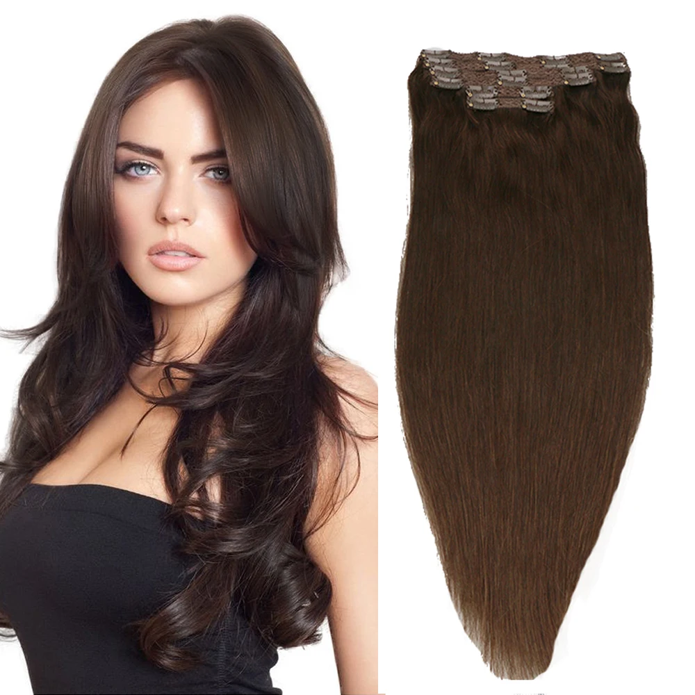Toysww 100% натуральные человеческие волосы для наращивания на всю голову 6 шт./компл. волосы для наращивания на заколках темно-коричневого цвета #2100 г 120 г