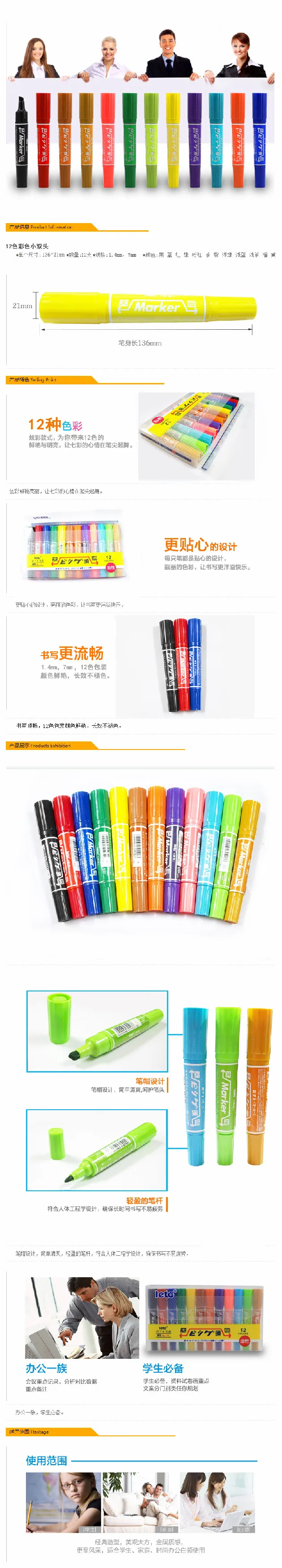 12 шт. нетоксичные флуоресцентные маркеры с двумя кончиками | Канцтовары для офиса