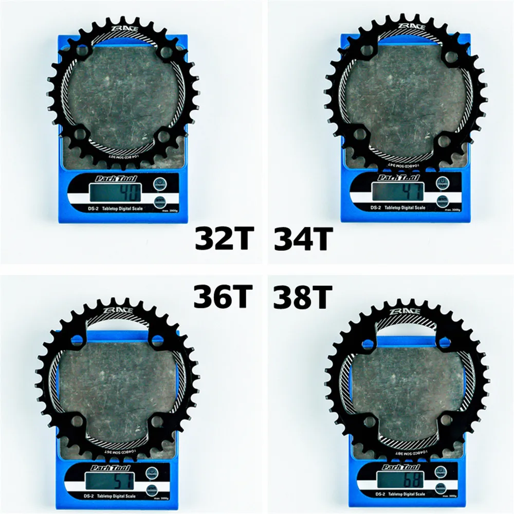 BCD: 96mm Tooth type: Narrow Width tooth Material: AL7075 Process: CNC Size: 32T 34T 36T 38T Compatibility: 9 / 10 / 11 / 12 Speed Compatible crank: Compatible for ACERA / ALIVIO / DEORE / X7 / X9, etc. Bolt Center Diameter 96mm crank FC-M310, FC-M311, FC-M410, FC-M430, FC-M4050, FC-T4010 BCD: 104mm Tooth type: Narrow Width tooth Material: AL7075 Process: CNC Size: 32T 34T 36T 38T Compatibility: 9 / 10 / 11 / 12 Speed Weight: 32T/40g, 34T/47g, 36T/57g, 38T/68g