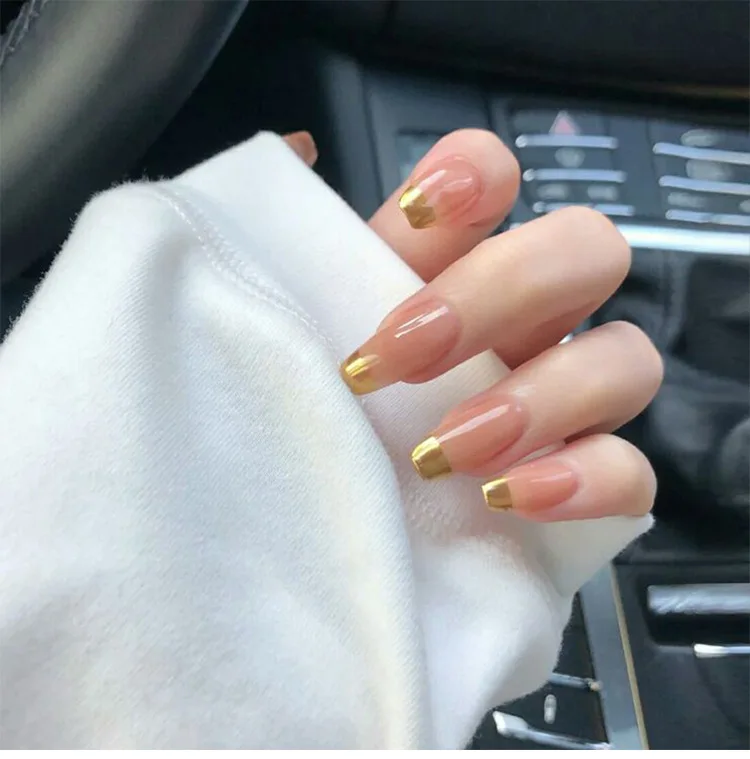 24 шт./компл. накладные ногти съемные длинные пномпеньские телесные французские ногти