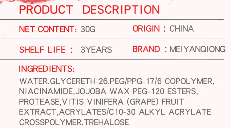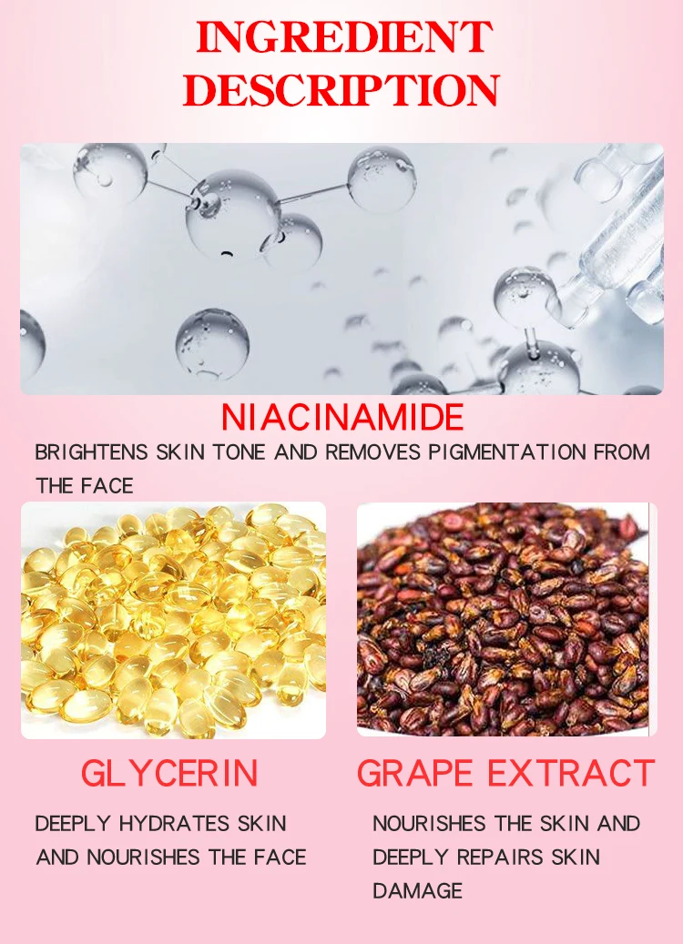 The moisturizing red alcohol collides with nicotinamide, which brings clean water to nourish and repair, carefully cares for the skin, repairs damaged skin in the sleep, deepens pores,