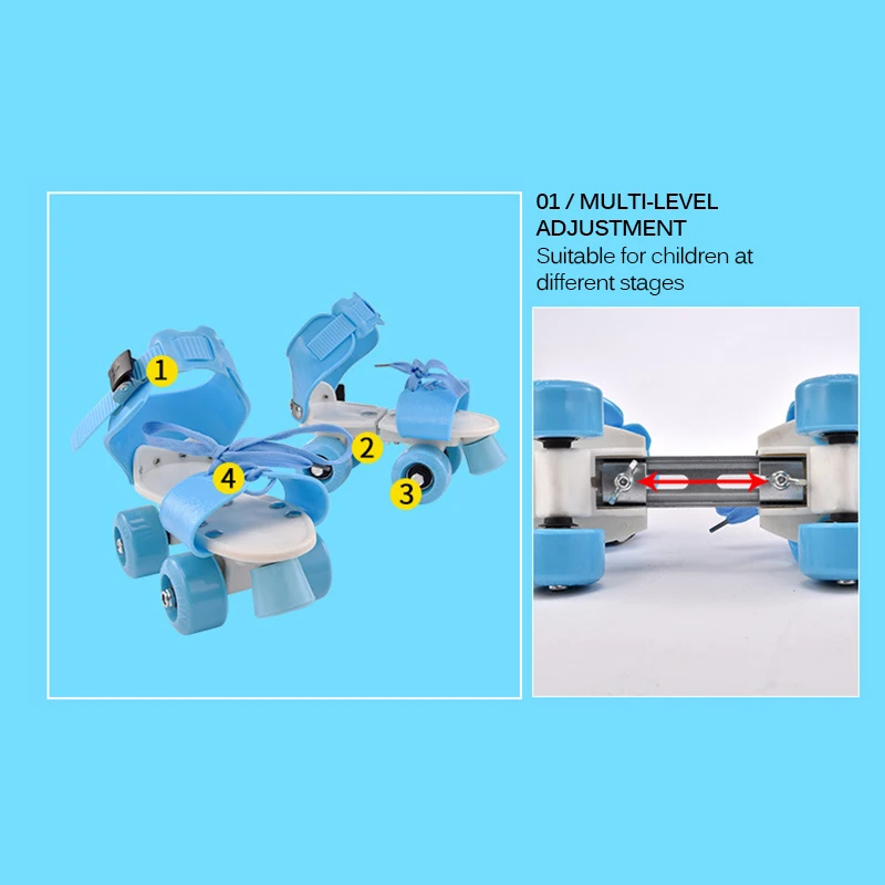 Обувь для катания на коньках может быть легко отрегулирована по длине с помощью винтов с закручивающейся подошвой, изменив размер, отрегулирув веревку для обуви и пряжку на лодыжке
