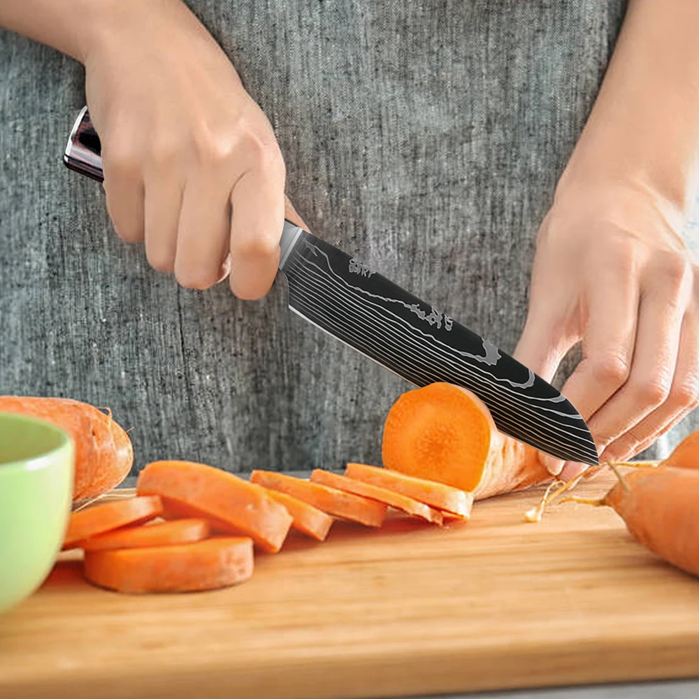 【 Лезвие из высокоуглеродистой нержавеющей стали 】 лезвие устойчиво к ржавчине и содержит углерод 0.6%-0.75% для твердости 2x по сравнению с другими ножами в своем классе, которые обычно содержат только 0.3%. 【Ультра-острый и долговечный 】 предназначен для резки, измельчения, измельчения, нарезки и нарезки с помощью бритвы, а также отлично подходит для тортов, резьбы, мяса, овощей, протестированное лазером Коническое лезвие края земли для формирования точного угла и обеспечения максимальной производительности резки и долговечности. 【Прочный и удобный PAKKA HANDLE】Pakka wood отличается высокой прочностью, прочностью и влагостойкостью, а также мягкостью и удобством. Эргономичная ручка ножа была сформирована через обширное тестирование, чтобы обеспечить безопасное, удобное сцепление без усталости в использовании.